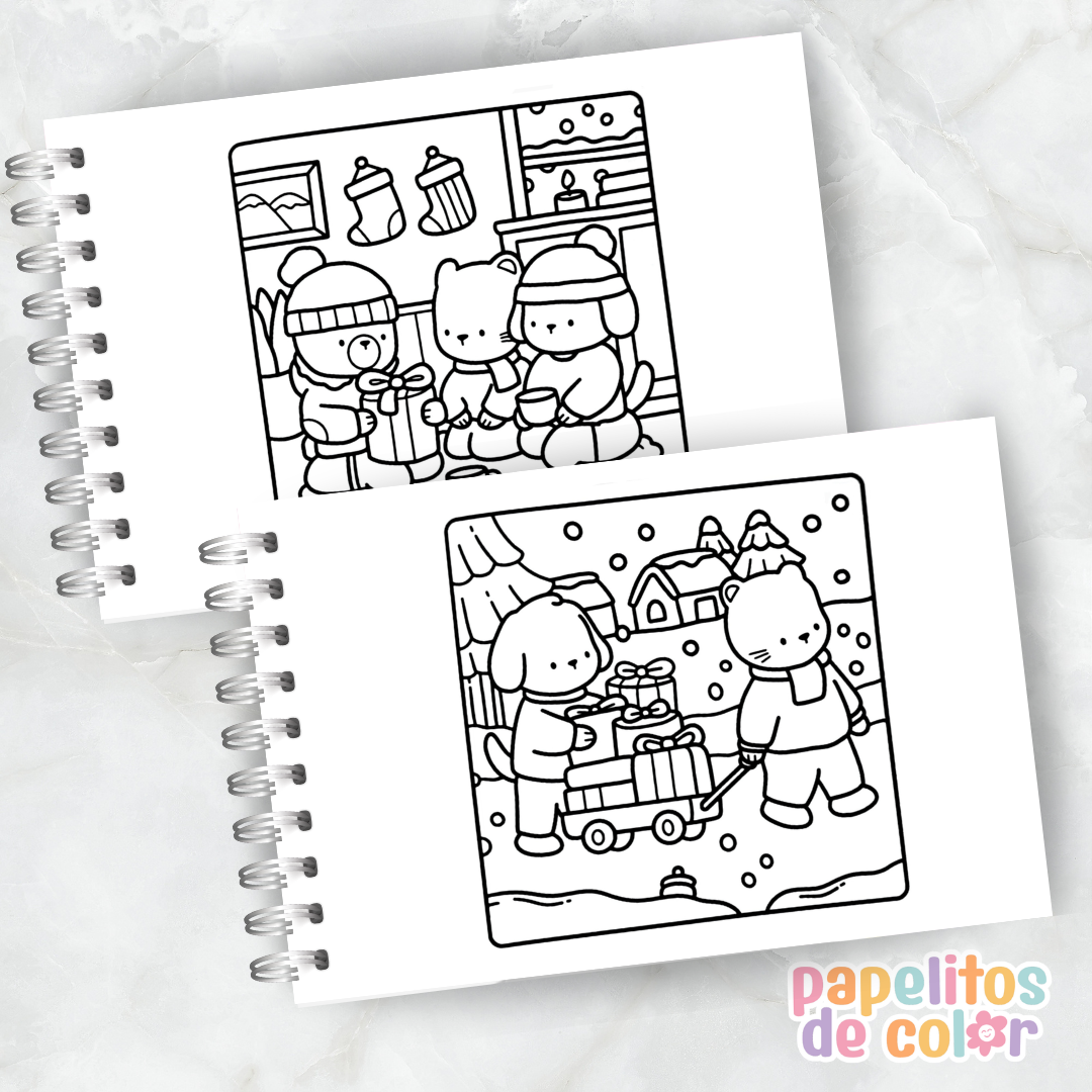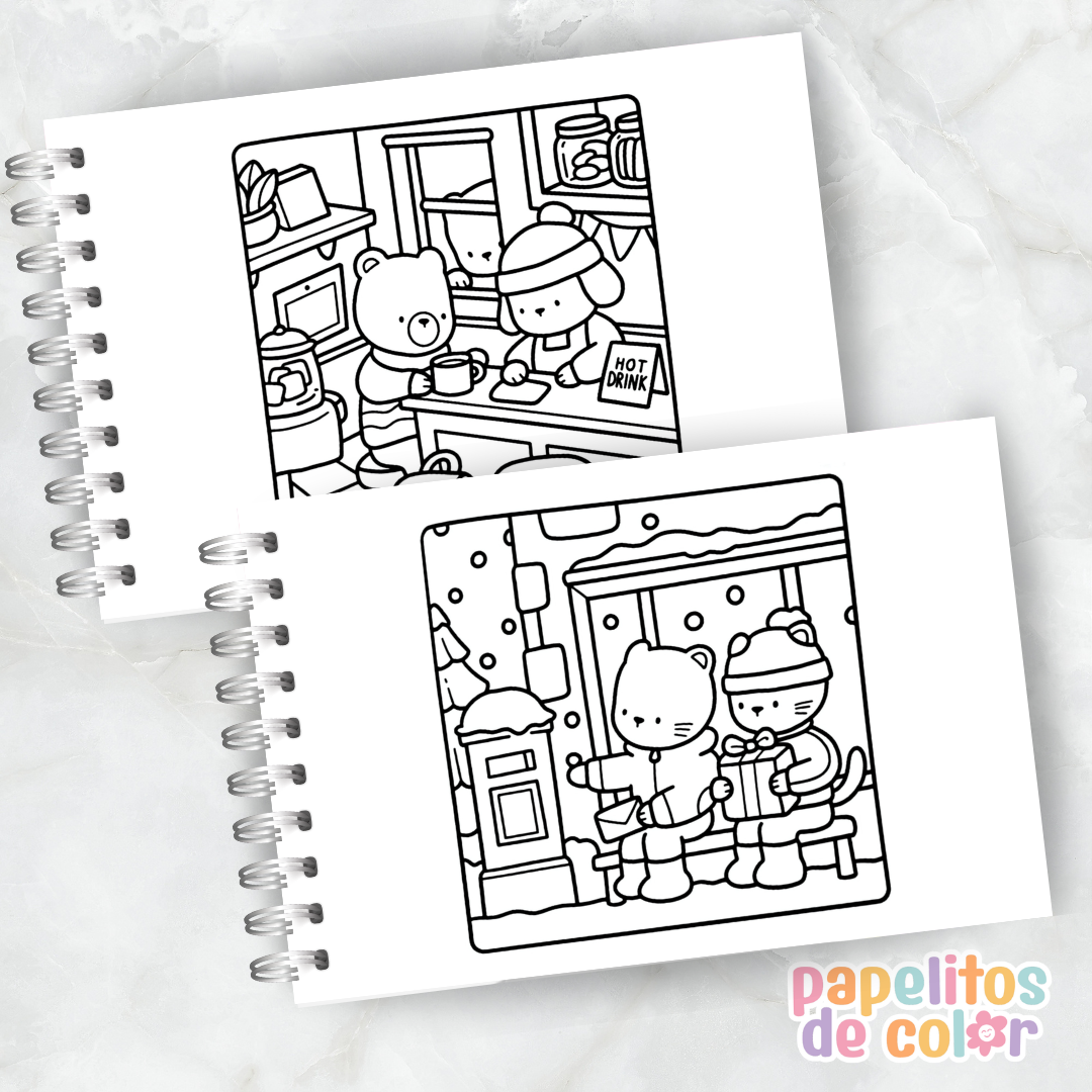 🖍️ Incluye 25 páginas llenas de escenas cozy, detalles navideños y momentos mágicos 🎁☕