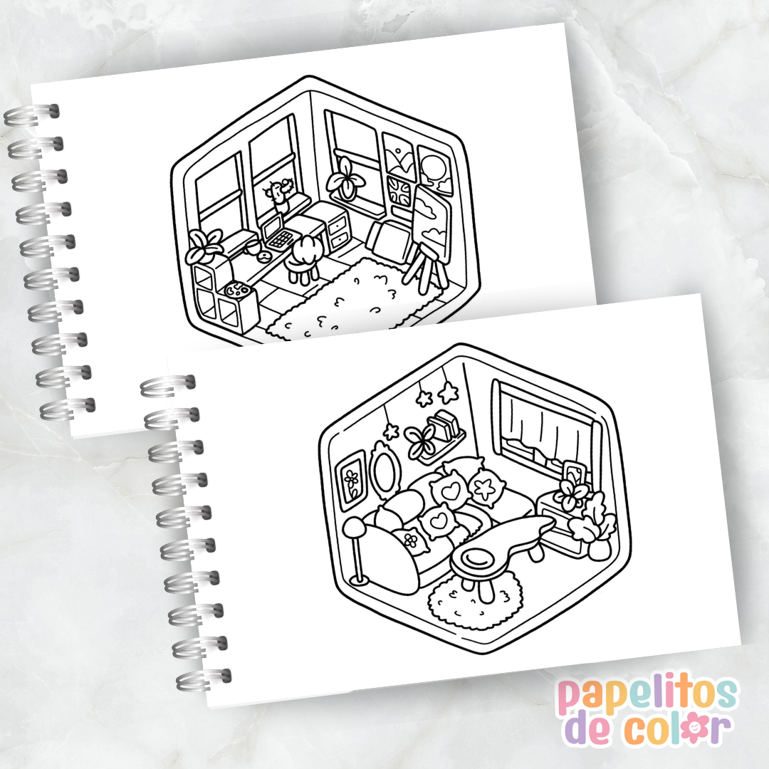 Sumergite en rincones cálidos y llenos de encanto con este cuaderno para pintar ideal para relajarte y disfrutar 🧸☕💖