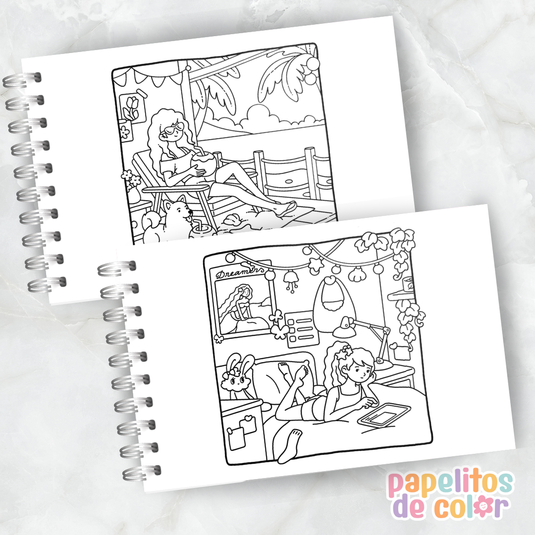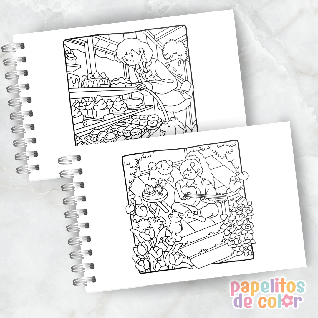 Descubrí la belleza de los pequeños momentos con este cuaderno para pintar lleno de escenas simples, cálidas y llenas de paz ☕🌿💖