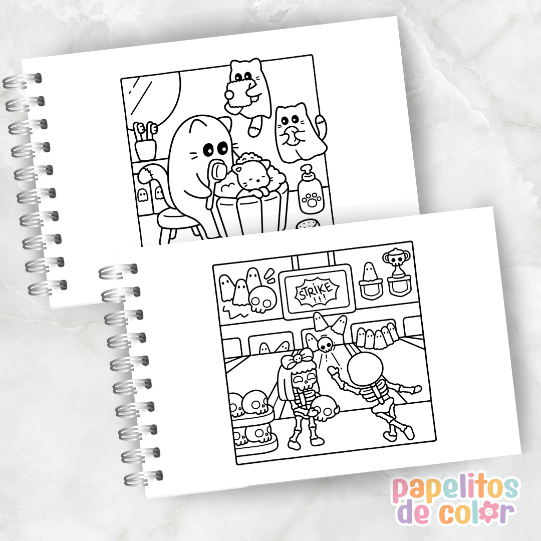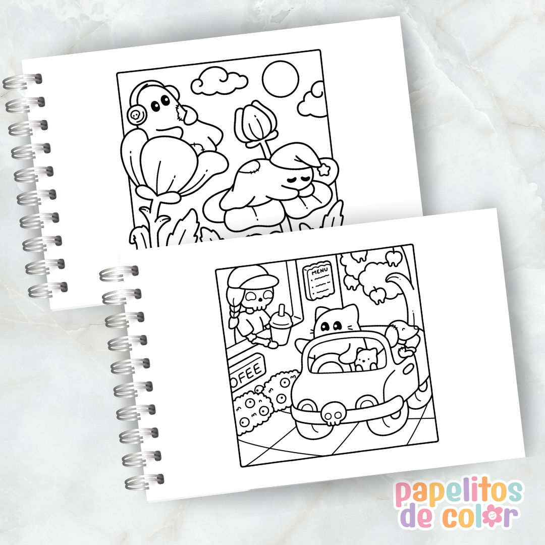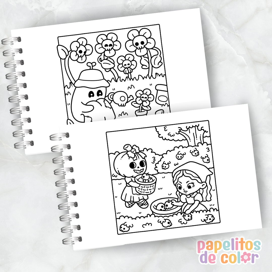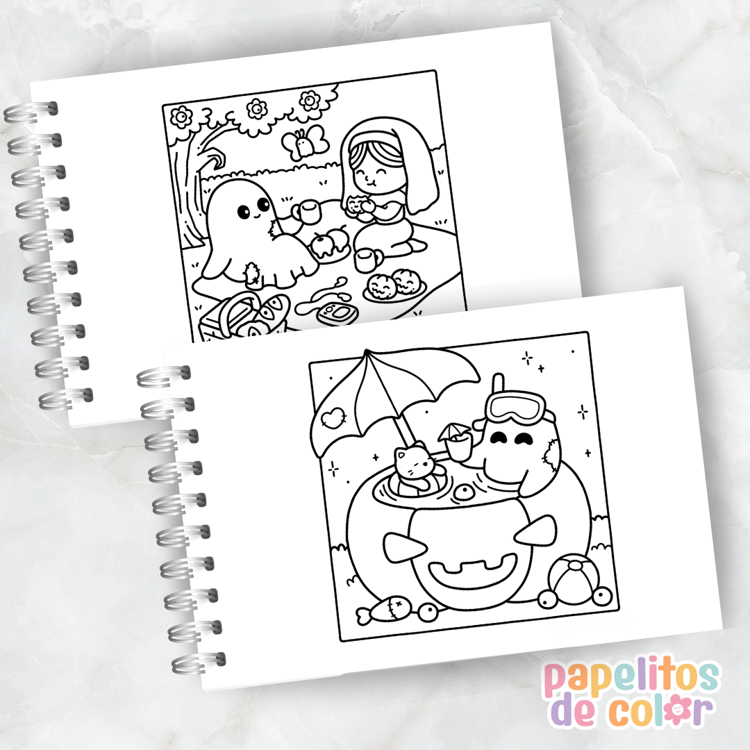 Una mezcla única de verano y vibra spooky en este cuaderno para pintar lleno de escenas divertidas y originales 👻🍹💖