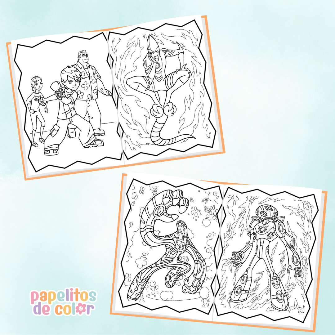 • Ilustraciones llenas de acción y personajes del universo Ben 10