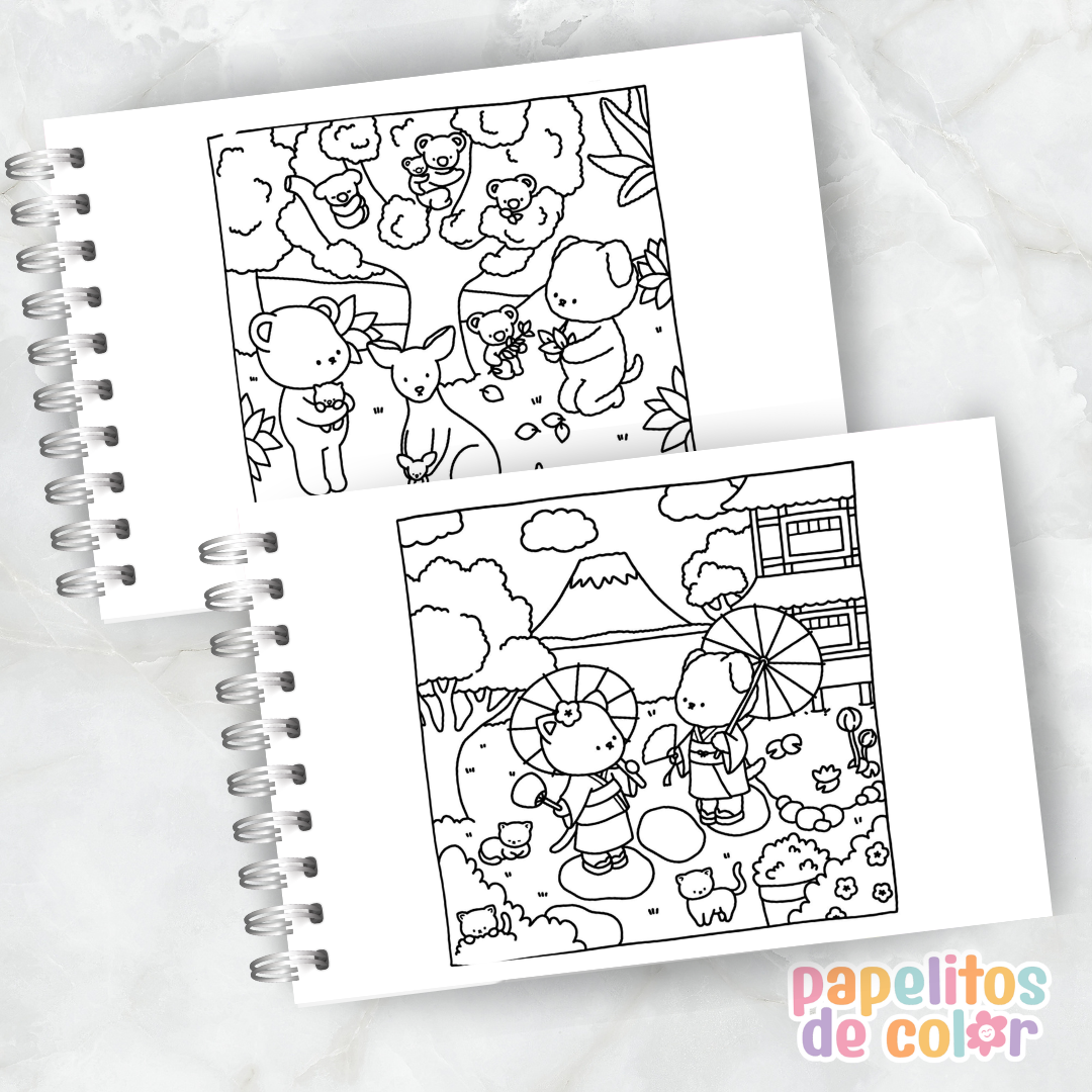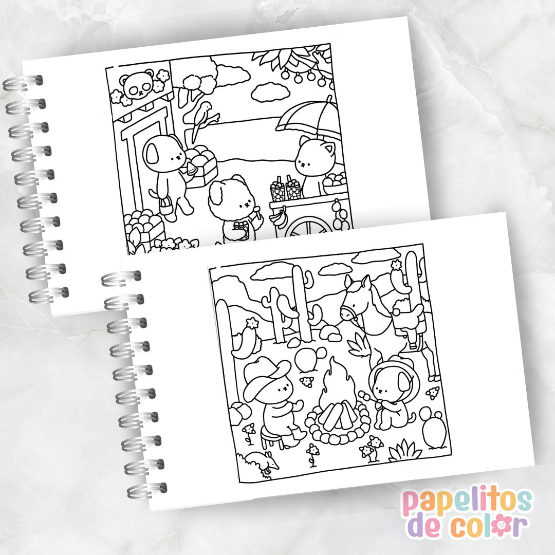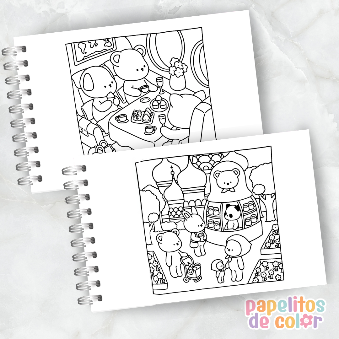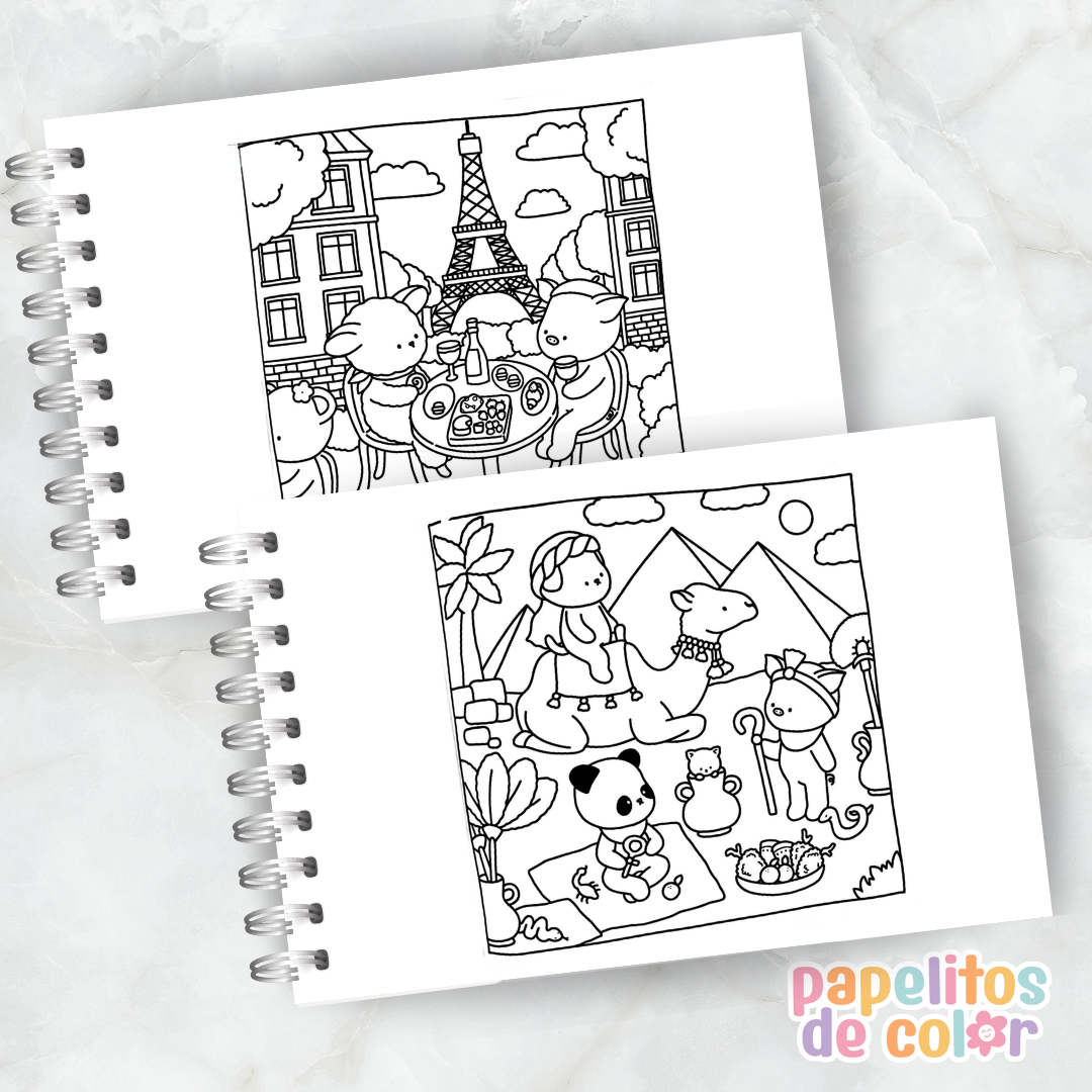 🎨 Incluye 23 hojas únicas con ilustraciones adorables estilo berrie viajando por distintos escenarios