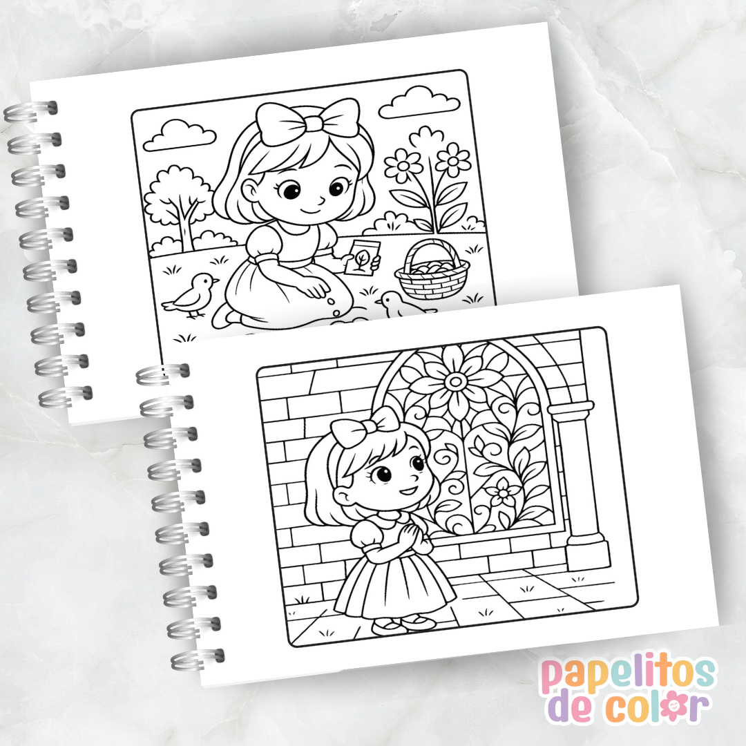 Libro para pintar de Blancanieves en formato A5 horizontal ✨
