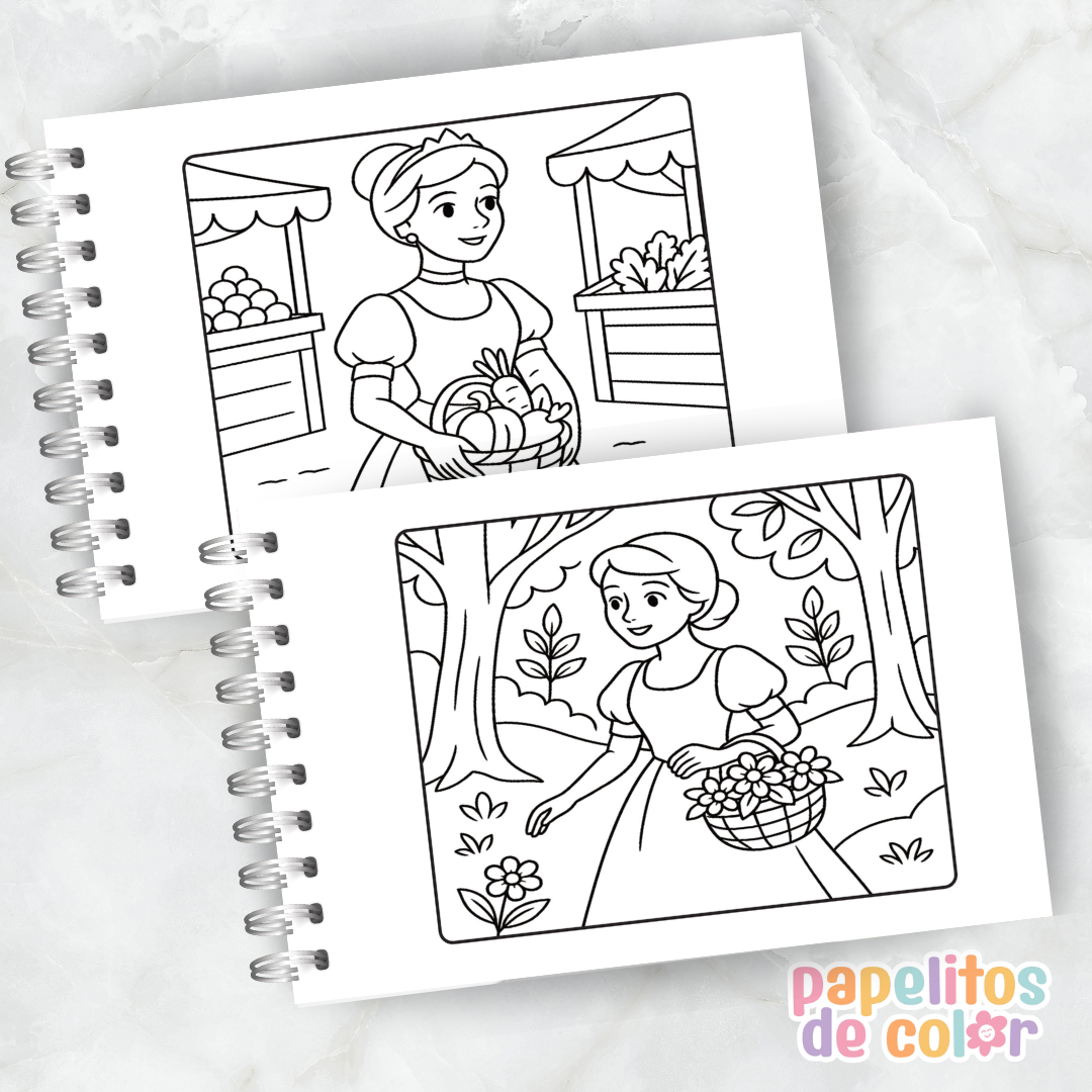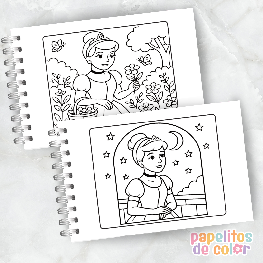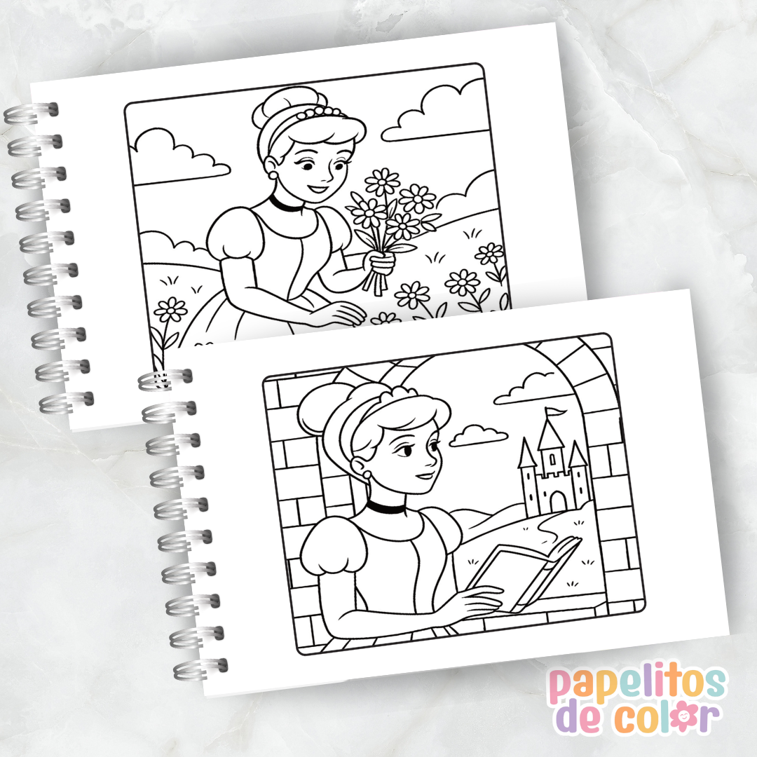 Libro para pintar de Cenicienta en formato A5 horizontal ✨