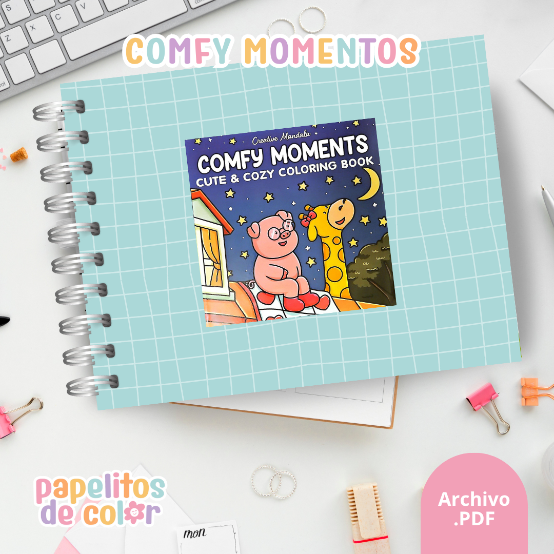 Disfrutá de pequeños momentos de calma con este hermoso libro para pintar Comfy Moments ☕🛋️🤎 Lleno de escenas acogedoras que invitan a relajarte y desconectar.