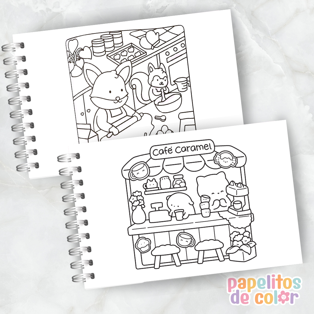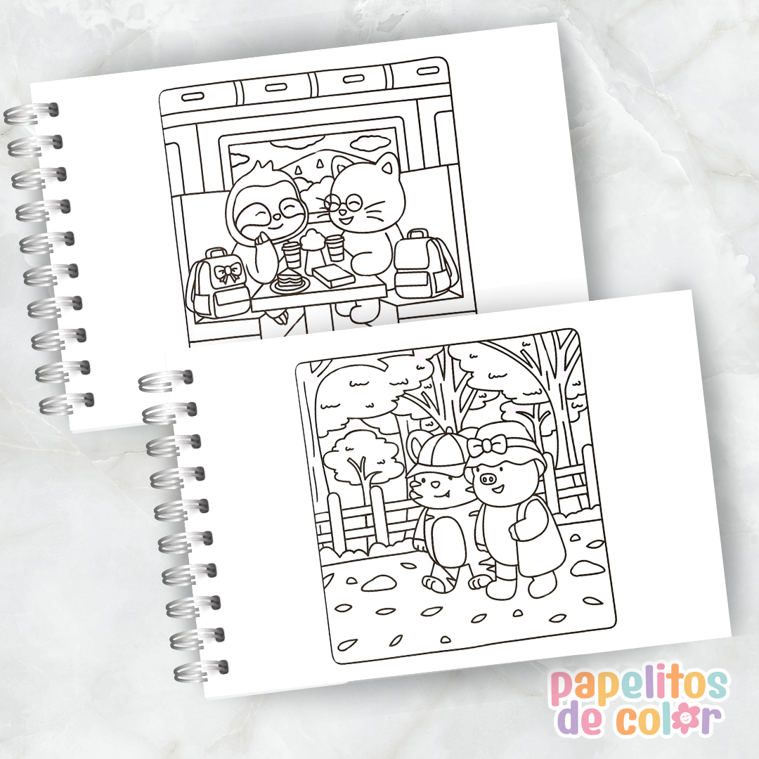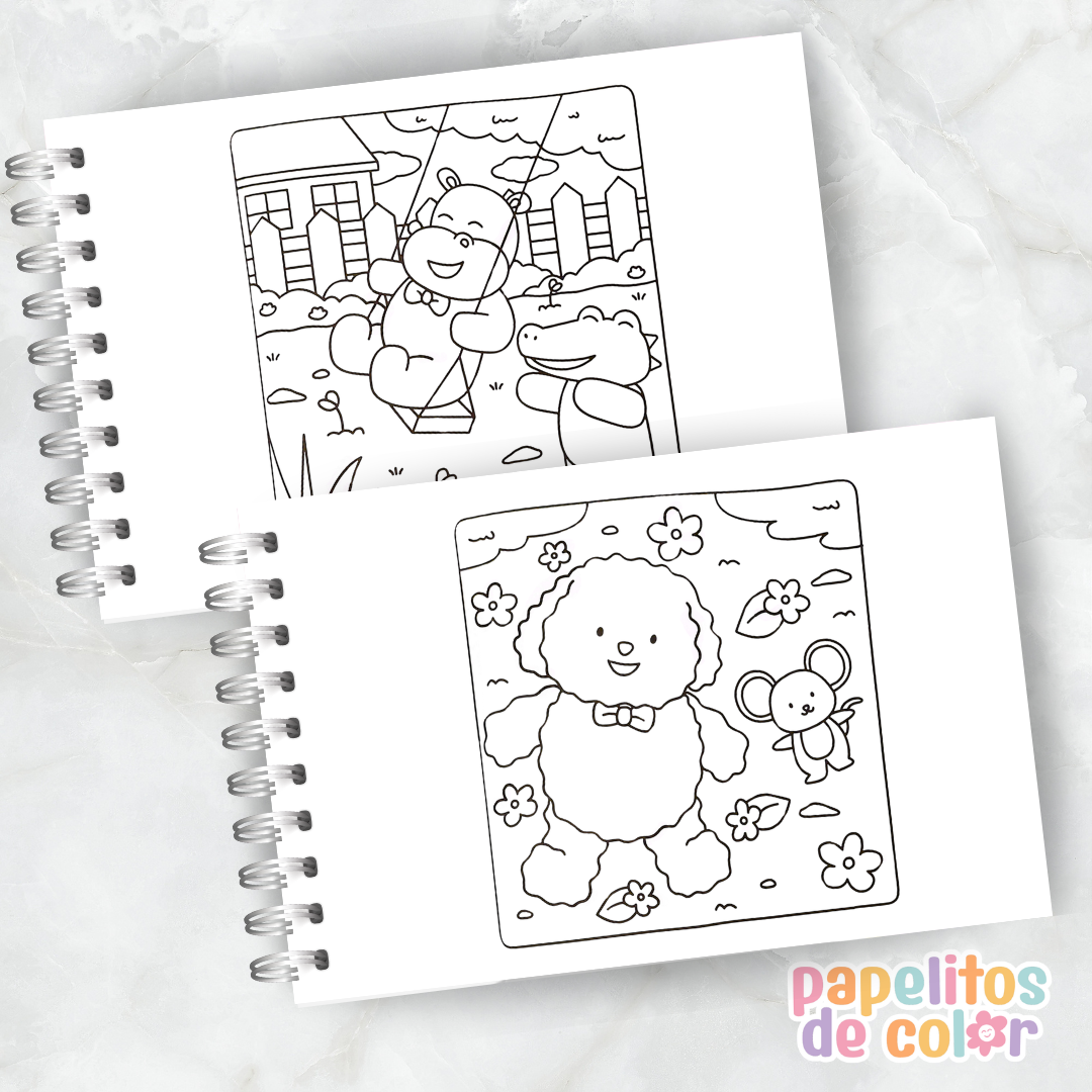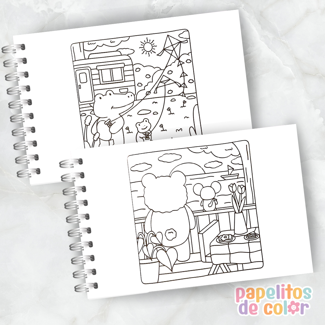 Incluye 30 hojas con ilustraciones simples y encantadoras ✨🖍️ en formato A5 horizontal, ideal para pintar cómodamente y disfrutar del proceso creativo.