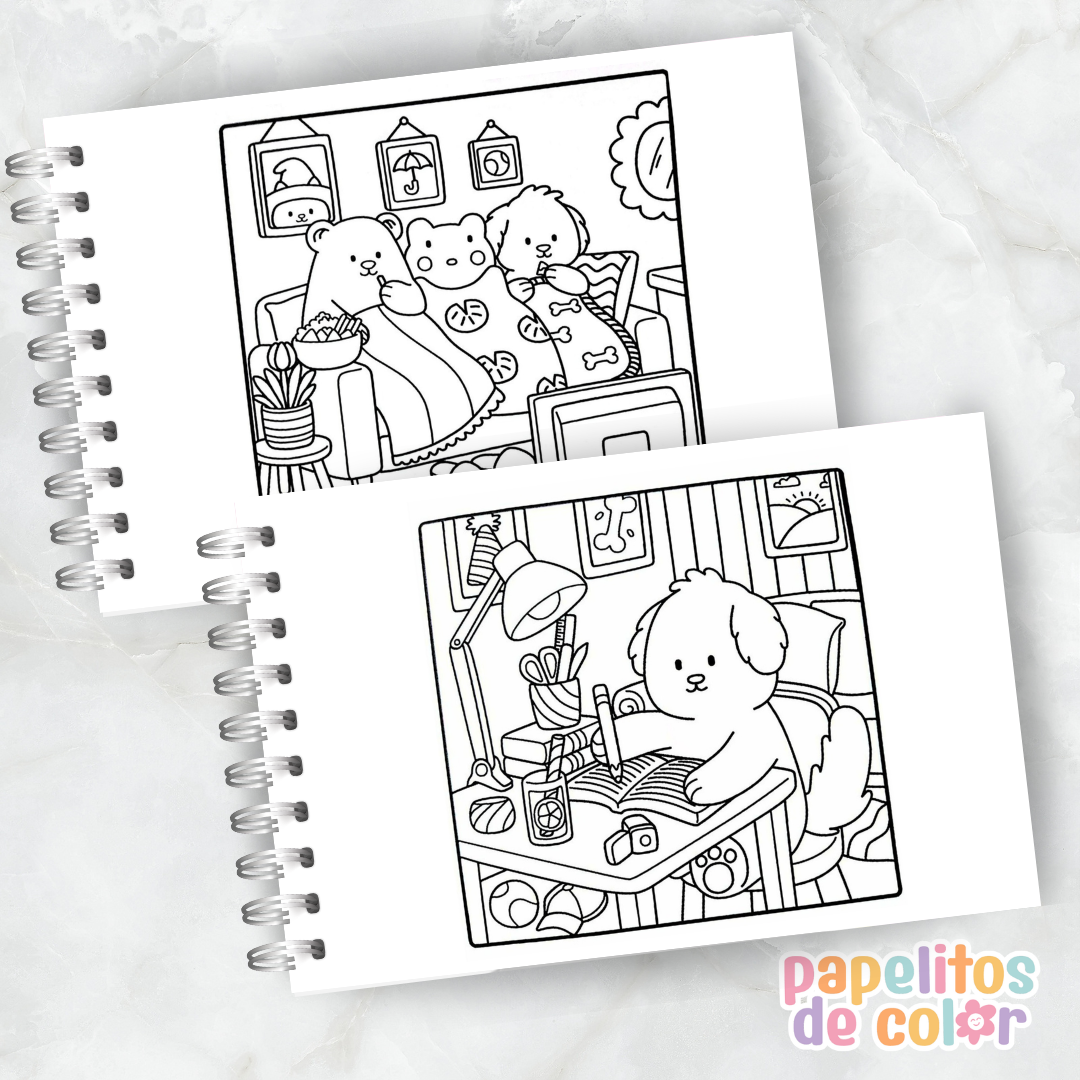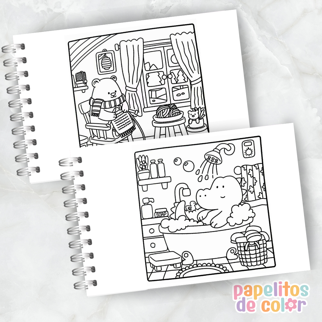Sumergite en un mundo tierno y acogedor con este encantador libro para pintar Cute & Cozy 🧸🕯️💖 Ideal para disfrutar momentos de relax mientras llenás de color escenas dulces y reconfortantes.