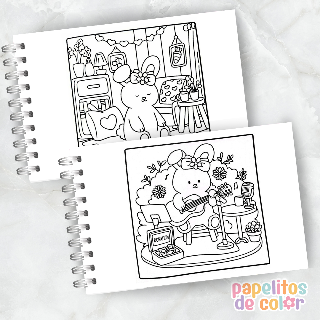 Incluye 26 páginas con ilustraciones adorables ✨🖍️ en formato A5 horizontal, perfecto para pintar cómodamente en cualquier momento del día.
