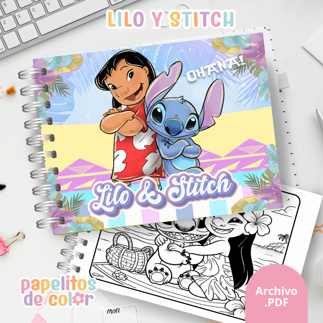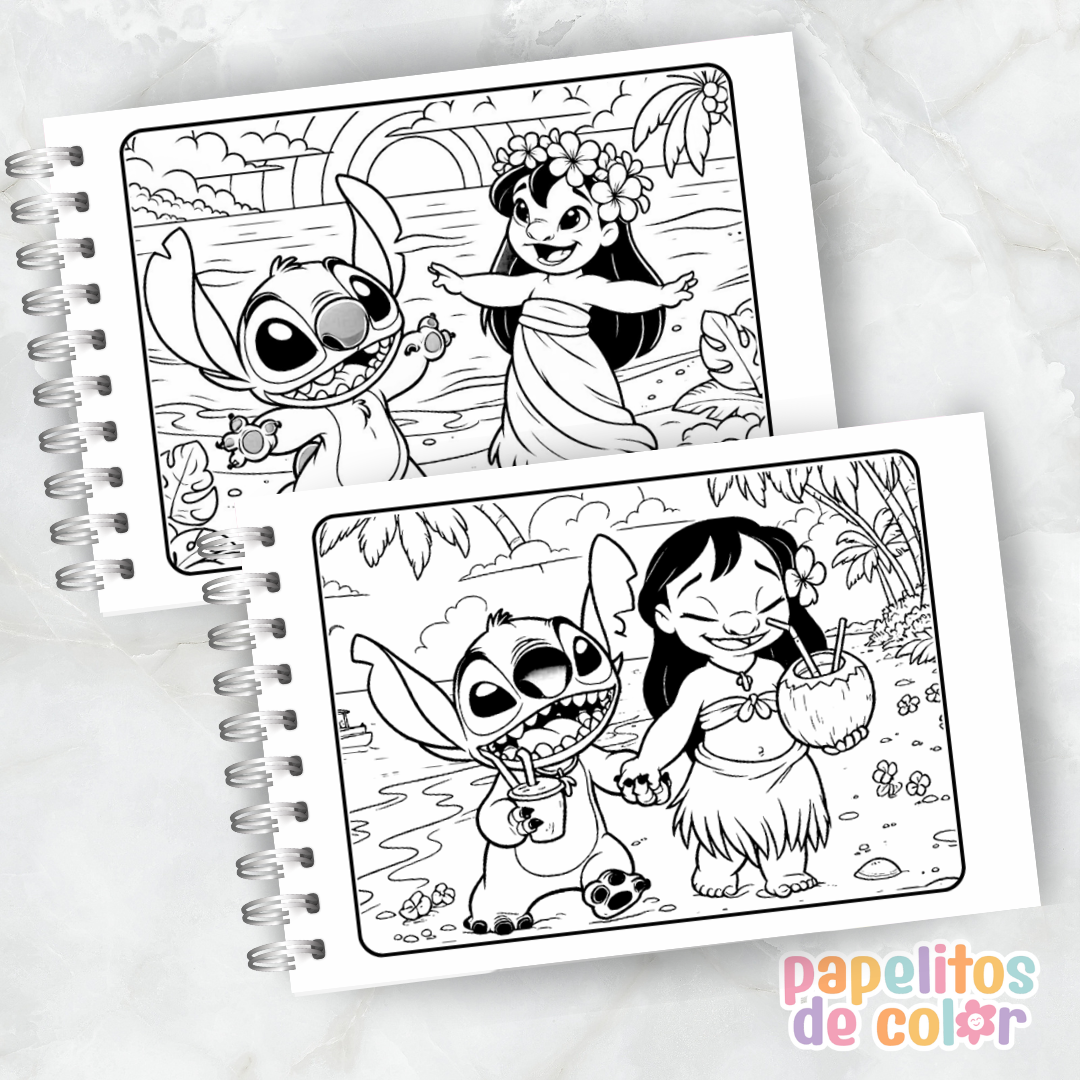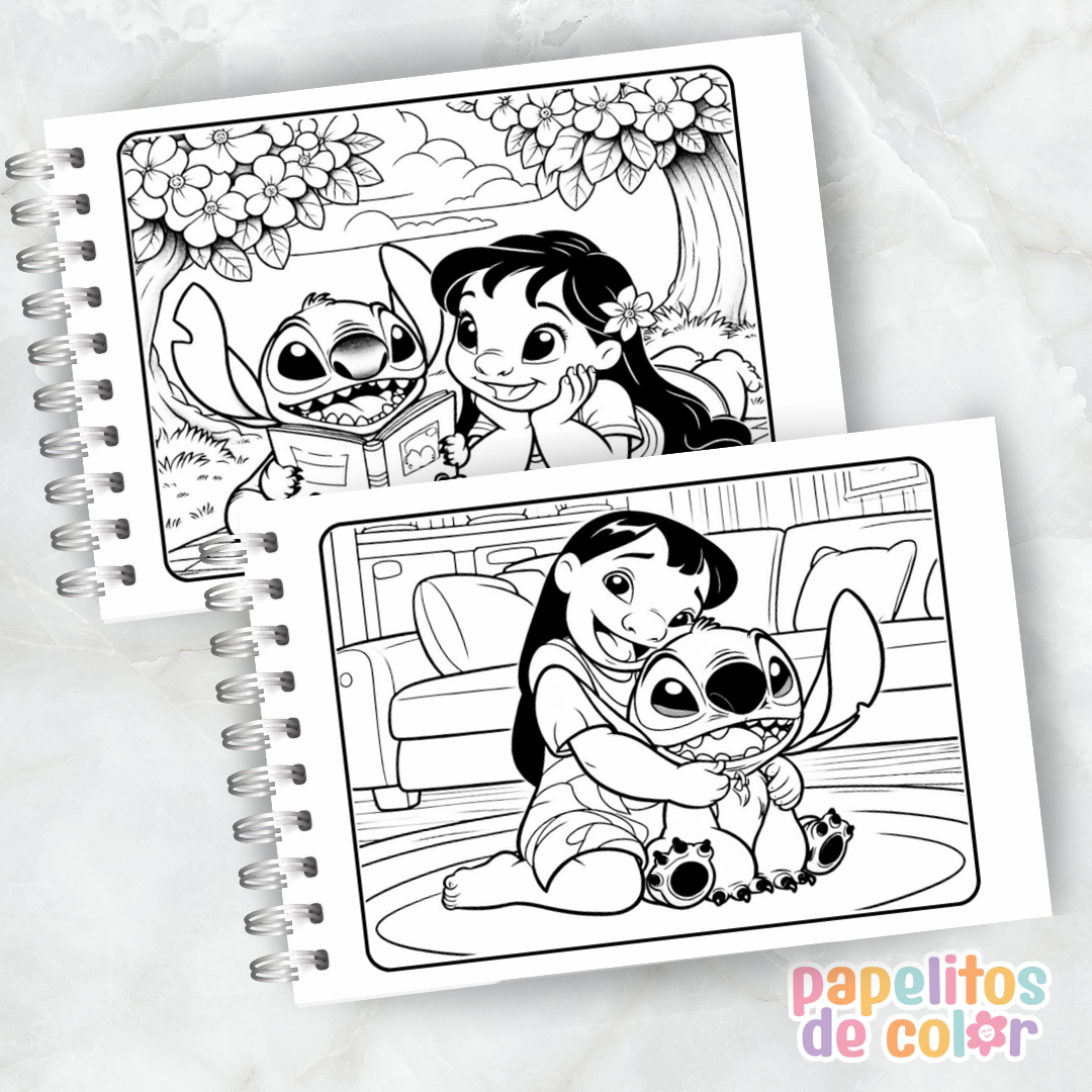 Disfrutá este hermoso libro para pintar de Lilo & Stitch 🖍️💙. En formato A5 apaisado, incluye 50 páginas listas para colorear, ideales para todas las edades.