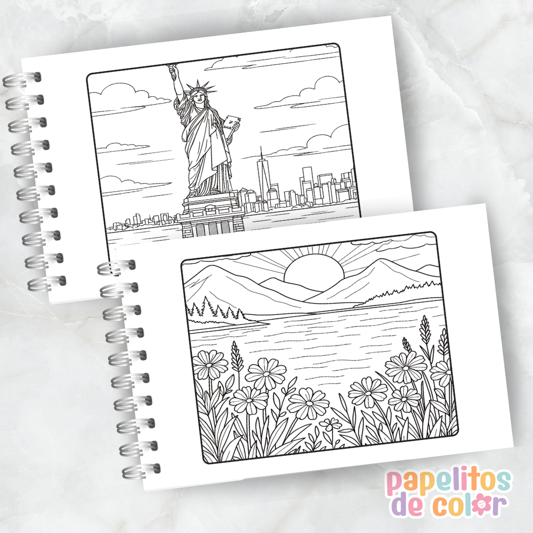 Libro para pintar de paisajes en formato A5 horizontal ✨