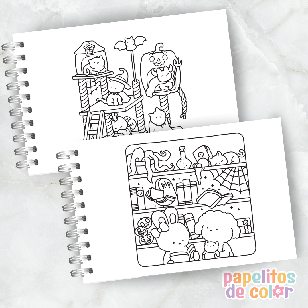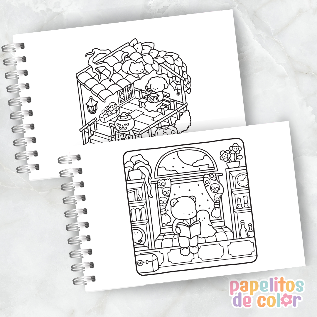 Sumergite en un rincón misterioso y divertido con este libro para pintar Spooky Corner 👻🎃🕸️ Lleno de escenas encantadoramente “spooky”, ideales para disfrutar sin dejar de lado lo tierno.