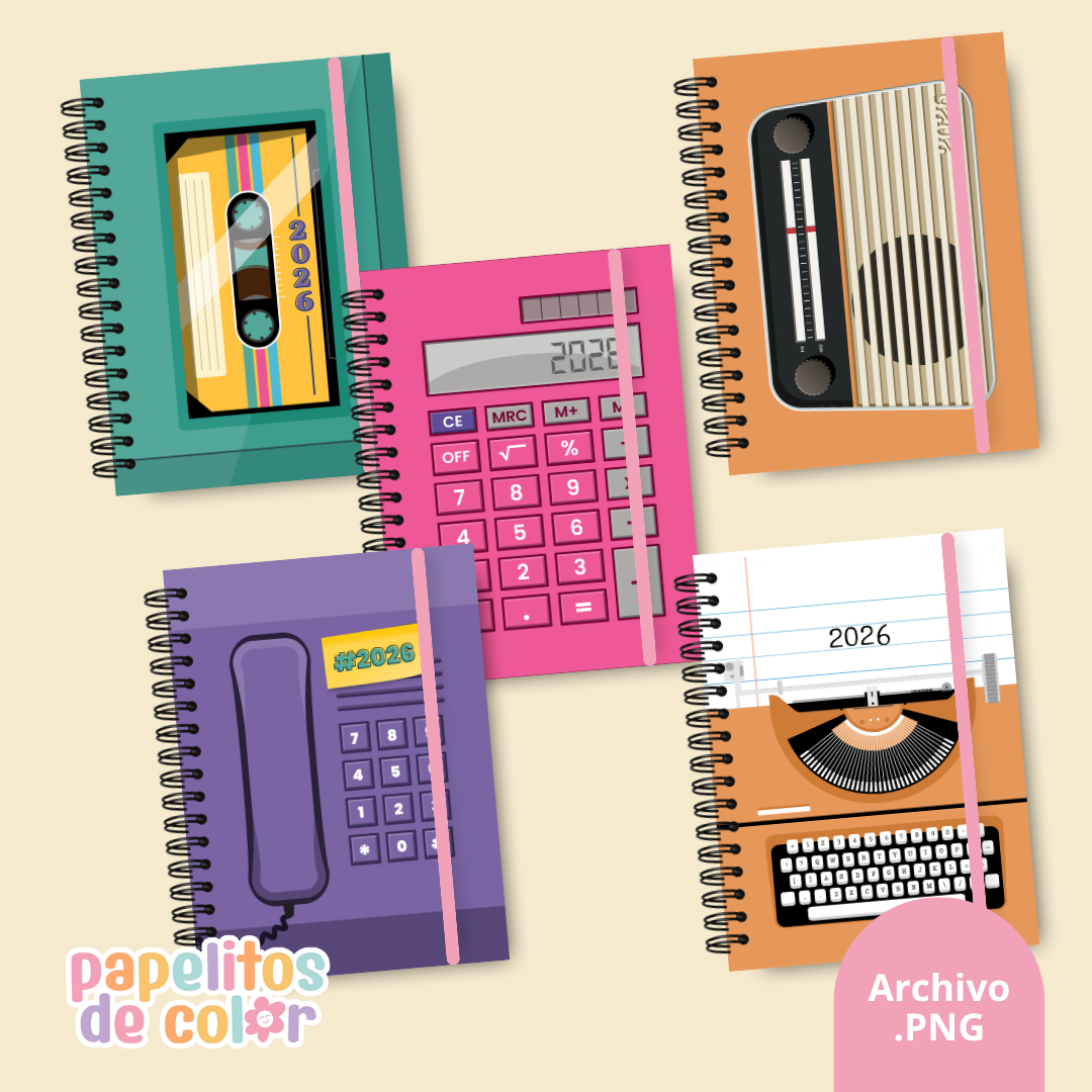 Dale un estilo único y nostálgico a tus agendas con el Pack Portadas Retro A5.