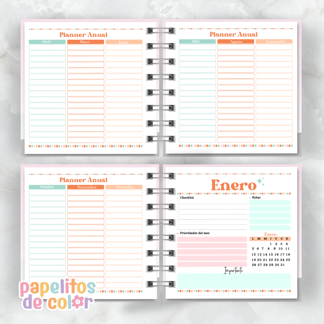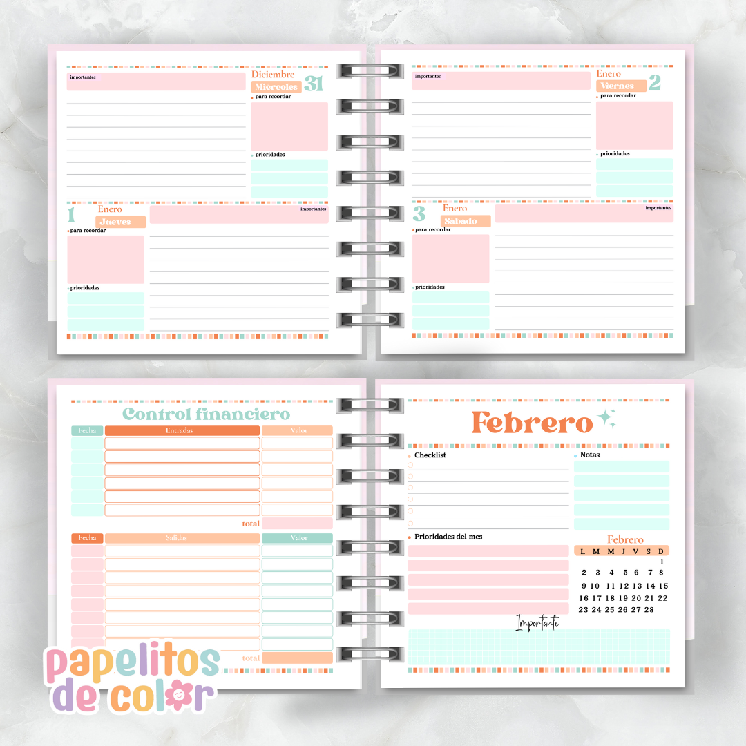 Con su formato de 2 días por hoja, es ideal para tener todo organizado de manera práctica, sin perder el estilo retro que la hace única ✨.