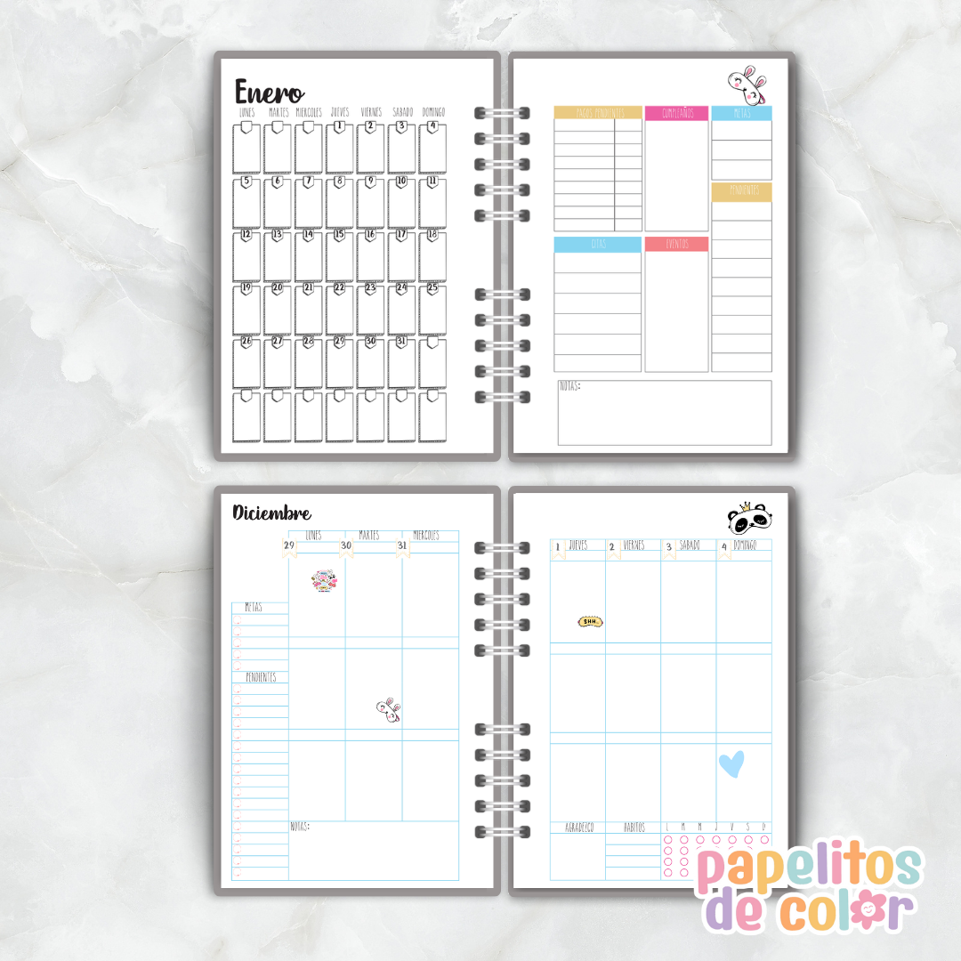 Ideal para quienes buscan una agenda completa, funcional y con un toque especial 🎭💗.