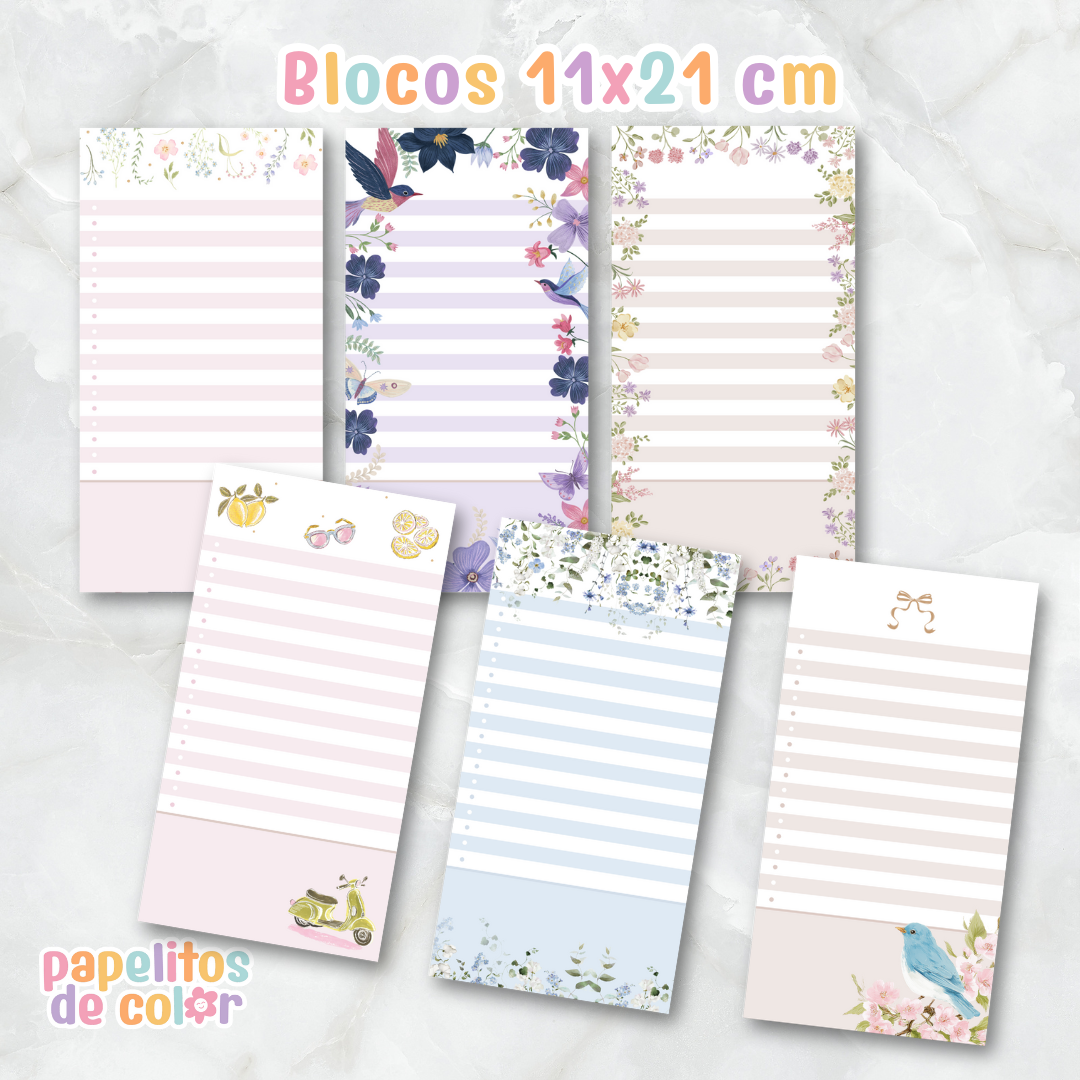 📏 Contiene 6 modelos en tamaño 10 x 24 cm, perfectos para anotadores y planners.