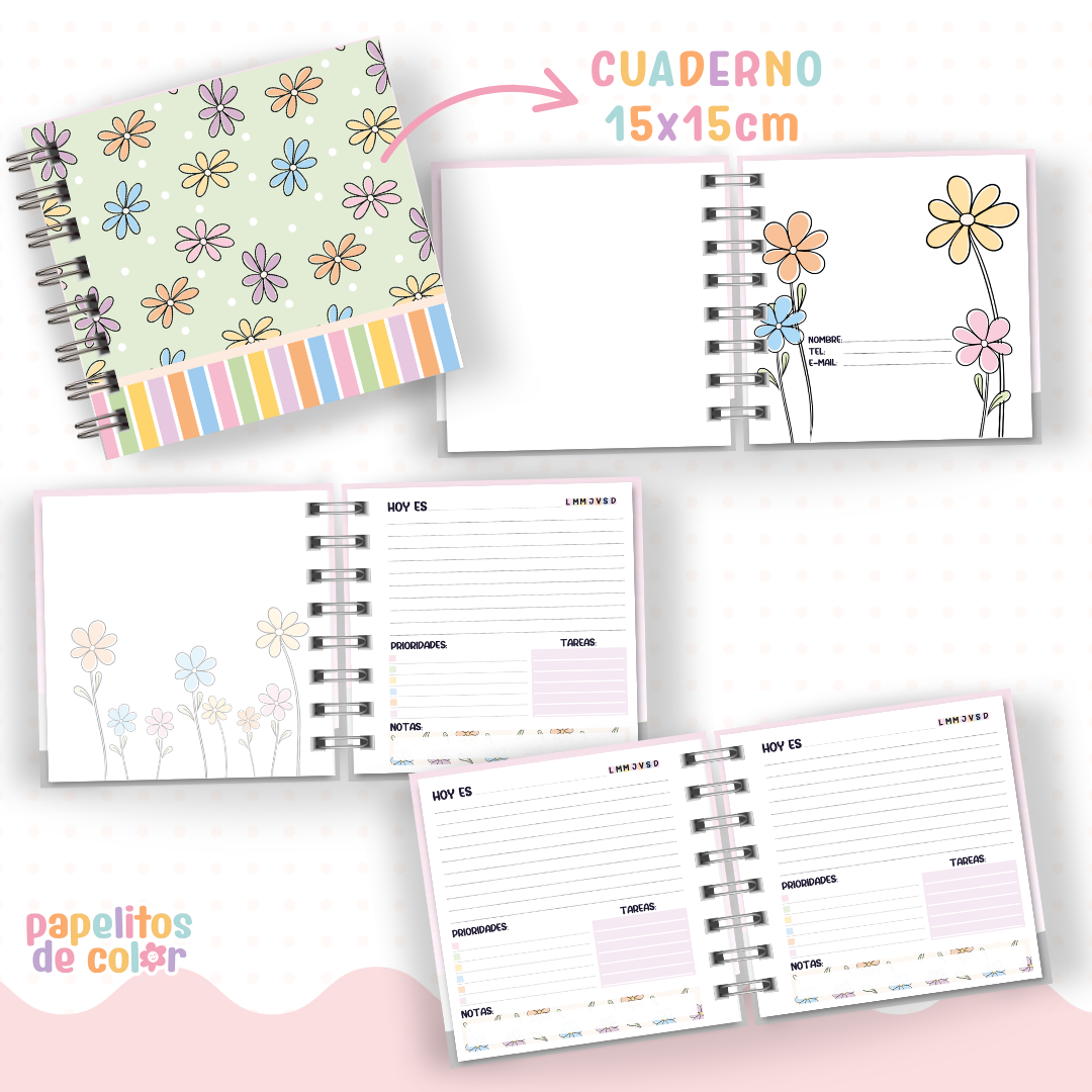 📌 1 cuaderno 15 x 15 cm (incluye 3 tapas + interior)