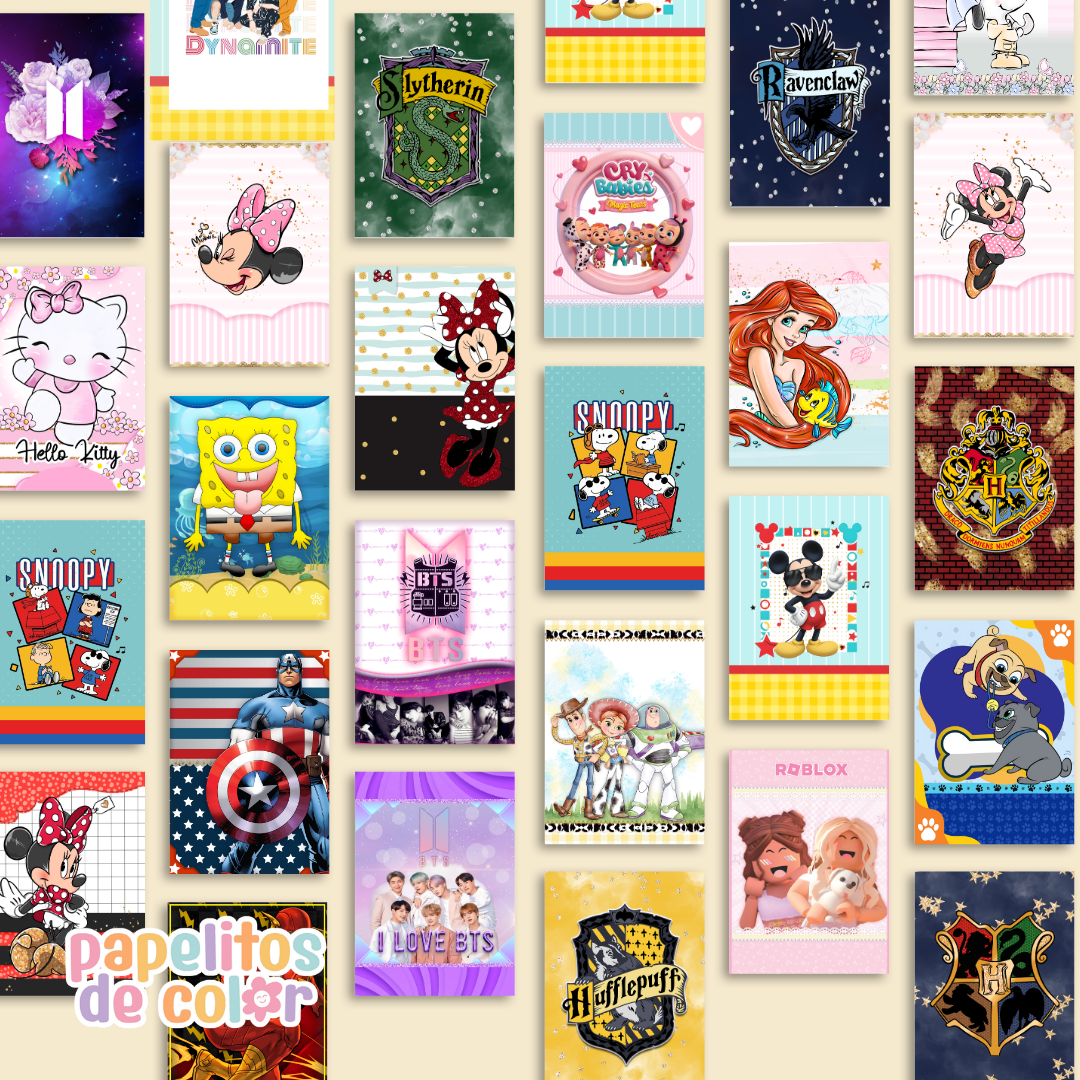 Incluye 40 tapas con sus respectivas contratapas listas para imprimir y usar en tus encuadernaciones. Comprás y lo recibÃs en instantes en tu mail 📩⚡ Diseños prediseñados para que solo agregues nombre o año y las uses tal cual están. Este volumen incluye personajes como Minnie Mouse, Hello Kitty, Bob Esponja, Capitán América, Sonic, Harry Potter, Paw Patrol y muchos más 🩷 Perfectas para armar tapas de cuadernos, agendas o planners de forma rápida y profesional.