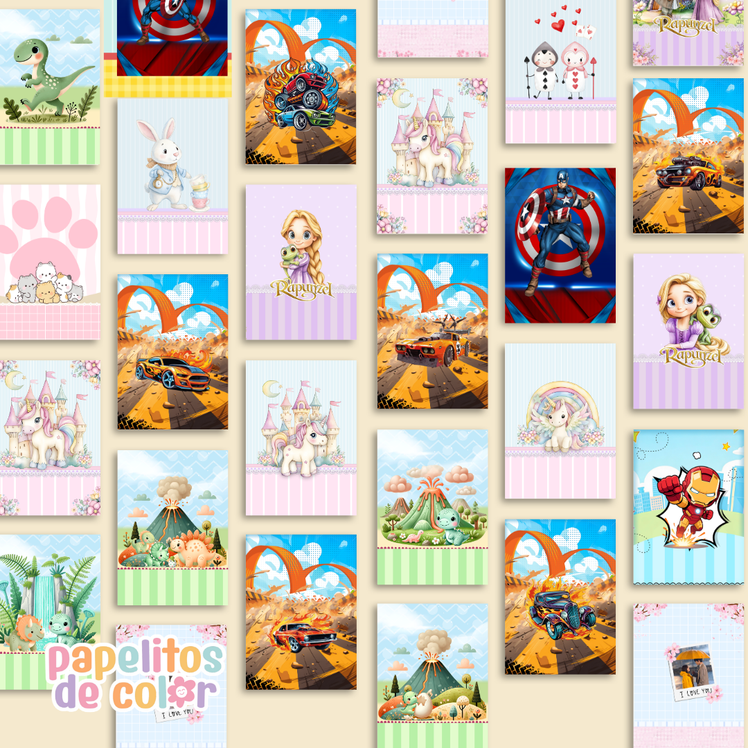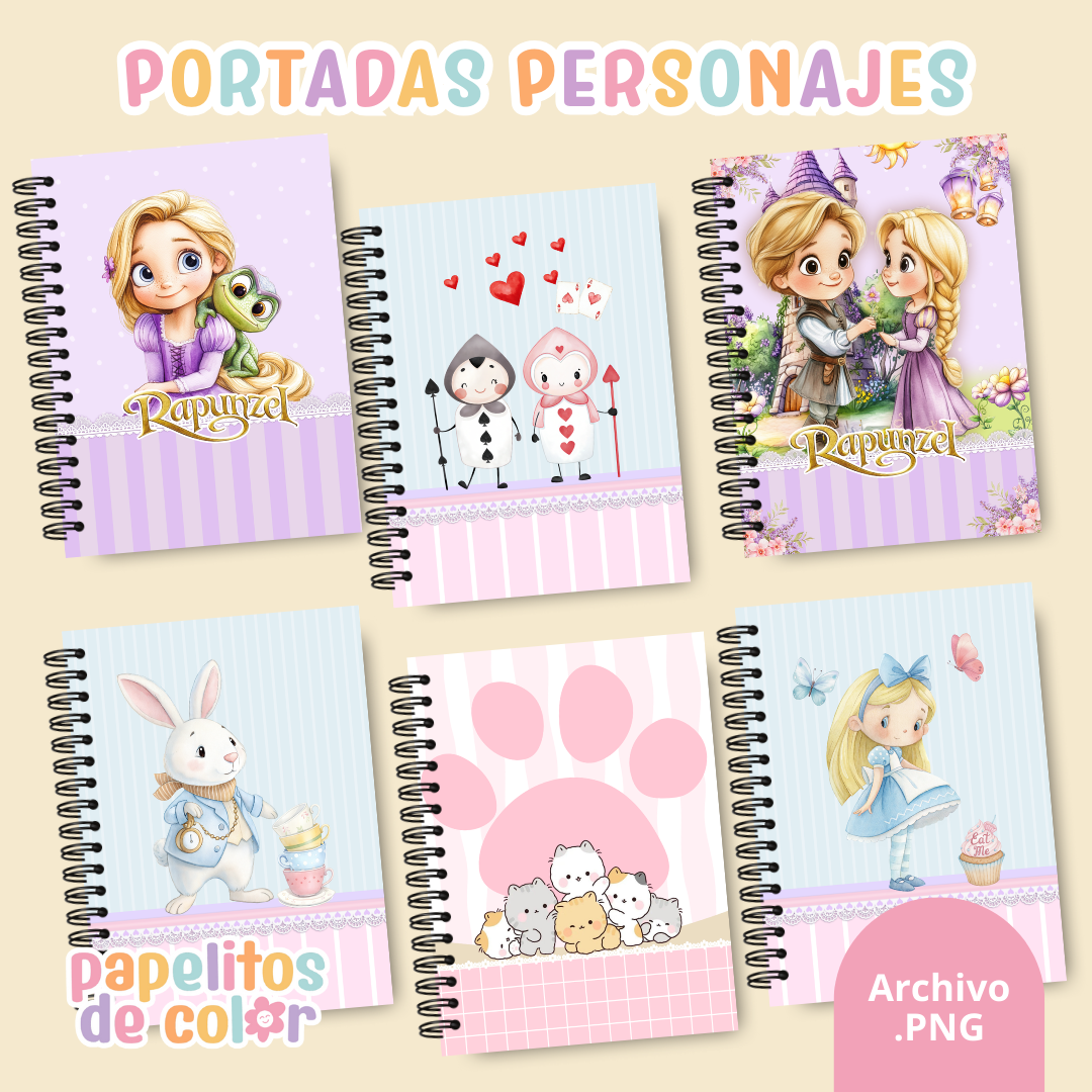 Incluye 40 tapas con sus respectivas contratapas listas para imprimir y usar en tus encuadernaciones. Comprás y lo recibís en instantes en tu mail 📩⚡ Diseños prediseñados para que solo agregues nombre o año y las uses tal cual están. Este volumen incluye temáticas y personajes como dinosaurios 🦕, unicornios 🦄, Capitán América, autos 🚗, gatitos cutes 🐱, doramas 💕 y Rapunzel ✨ Perfectas para armar tapas de cuadernos, agendas o planners de forma rápida y profesional.
