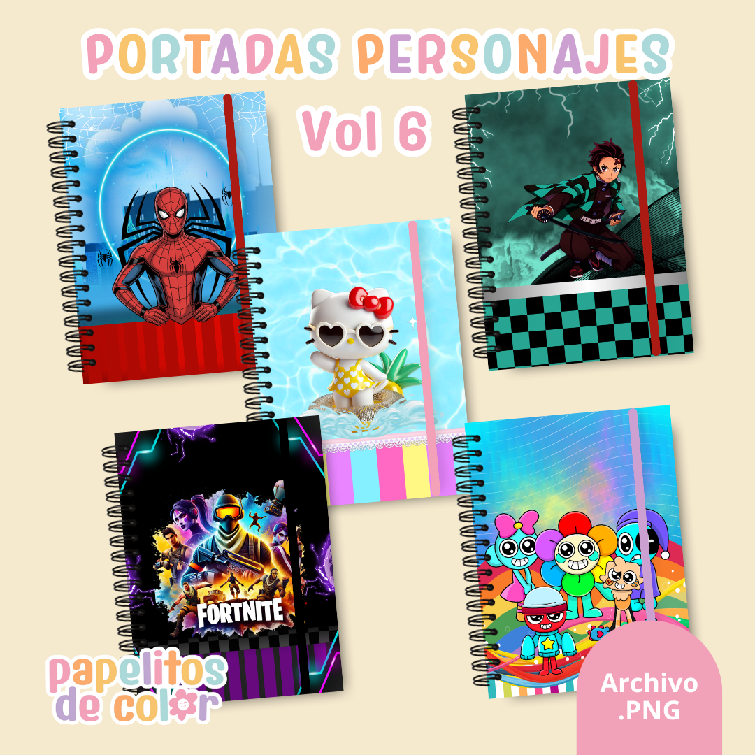 Incluye 43 tapas con sus respectivas contratapas listas para imprimir y usar en tus encuadernaciones. Comprás y lo recibís en instantes en tu mail 📩⚡ Diseños prediseñados para que solo agregues nombre o año y las uses tal cual están. Este volumen incluye personajes como Harry Potter, Fortnite, Intensamente, Hello Kitty, Spider-Man, Sprunkis y Mikey futbolero ⚽✨ Perfectas para armar tapas de cuadernos, agendas o planners de forma rápida y profesional.