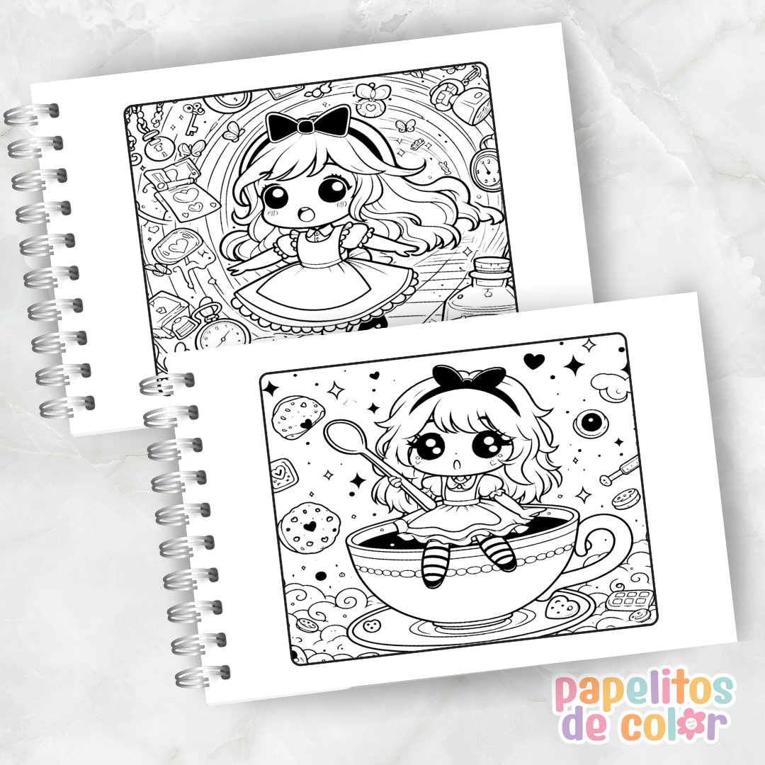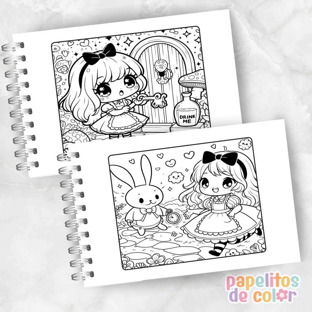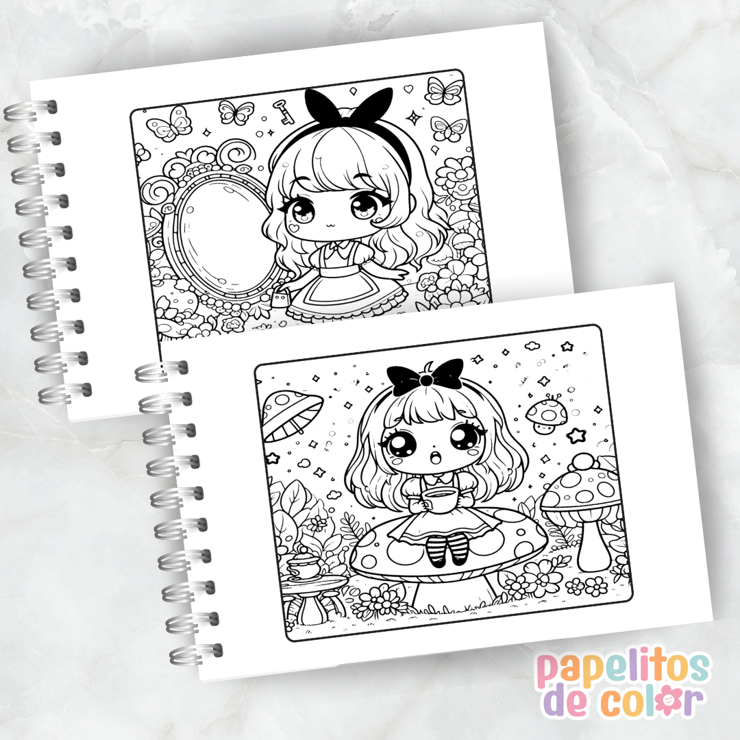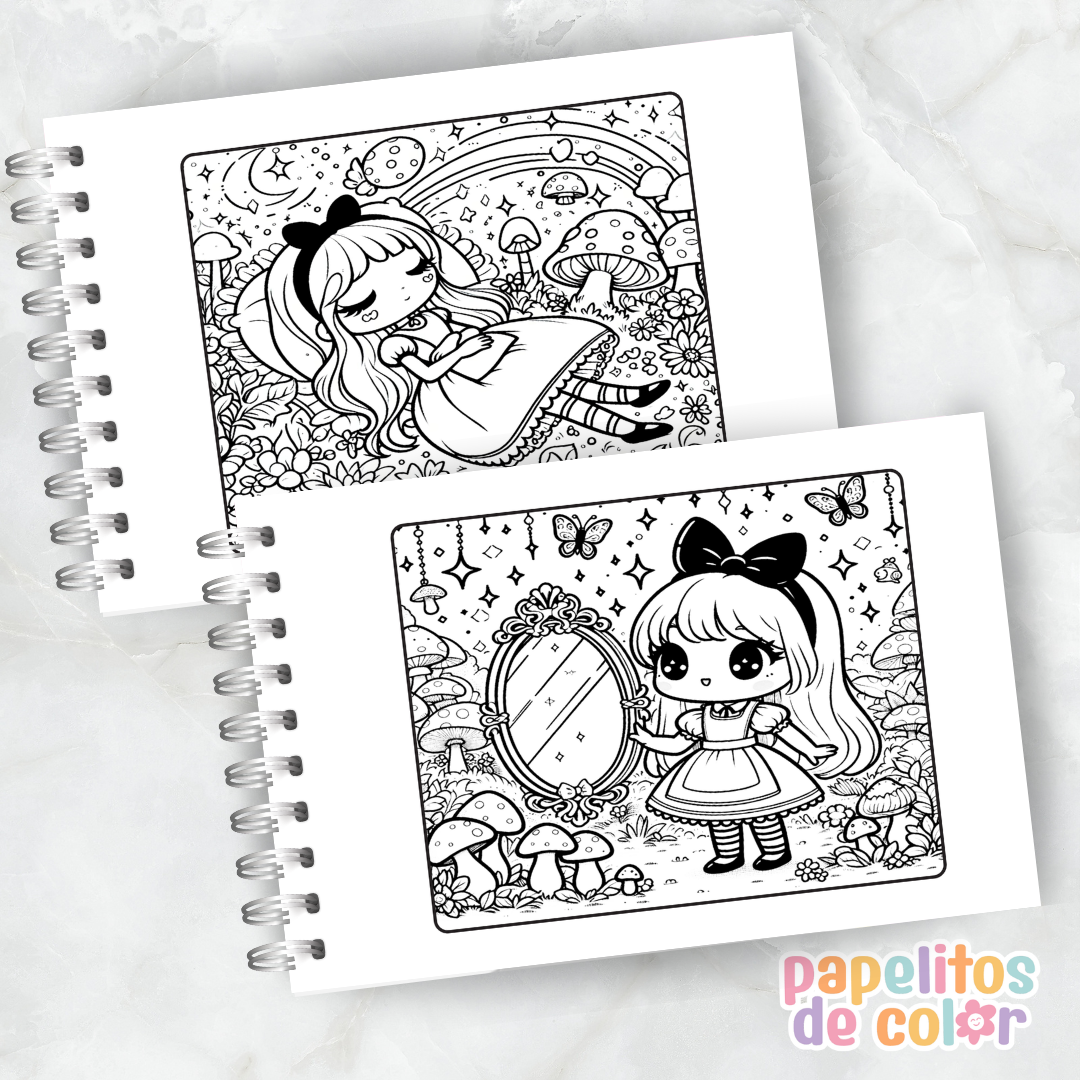 Sumergite en un mundo lleno de fantasía y aventuras con este mágico cuaderno para pintar inspirado en Alicia en el País de las Maravillas 🌈✨ Ideal para dejar volar la imaginación en un universo único y encantador 🍄🫖