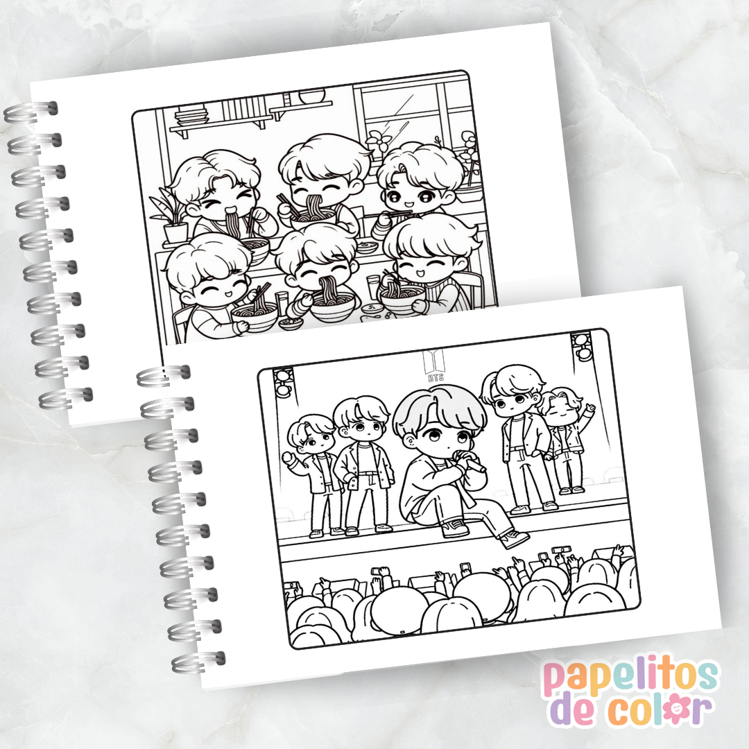 Sumergite en el mundo de BTS con este increíble cuaderno para pintar, ideal para fans que quieren relajarse, expresarse y disfrutar de sus ídolos favoritos de una forma creativa 💜🖌️