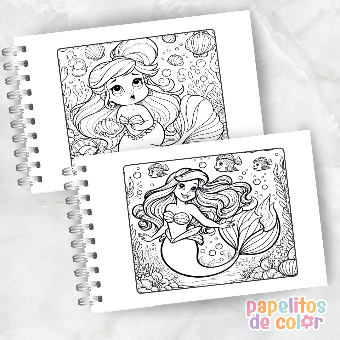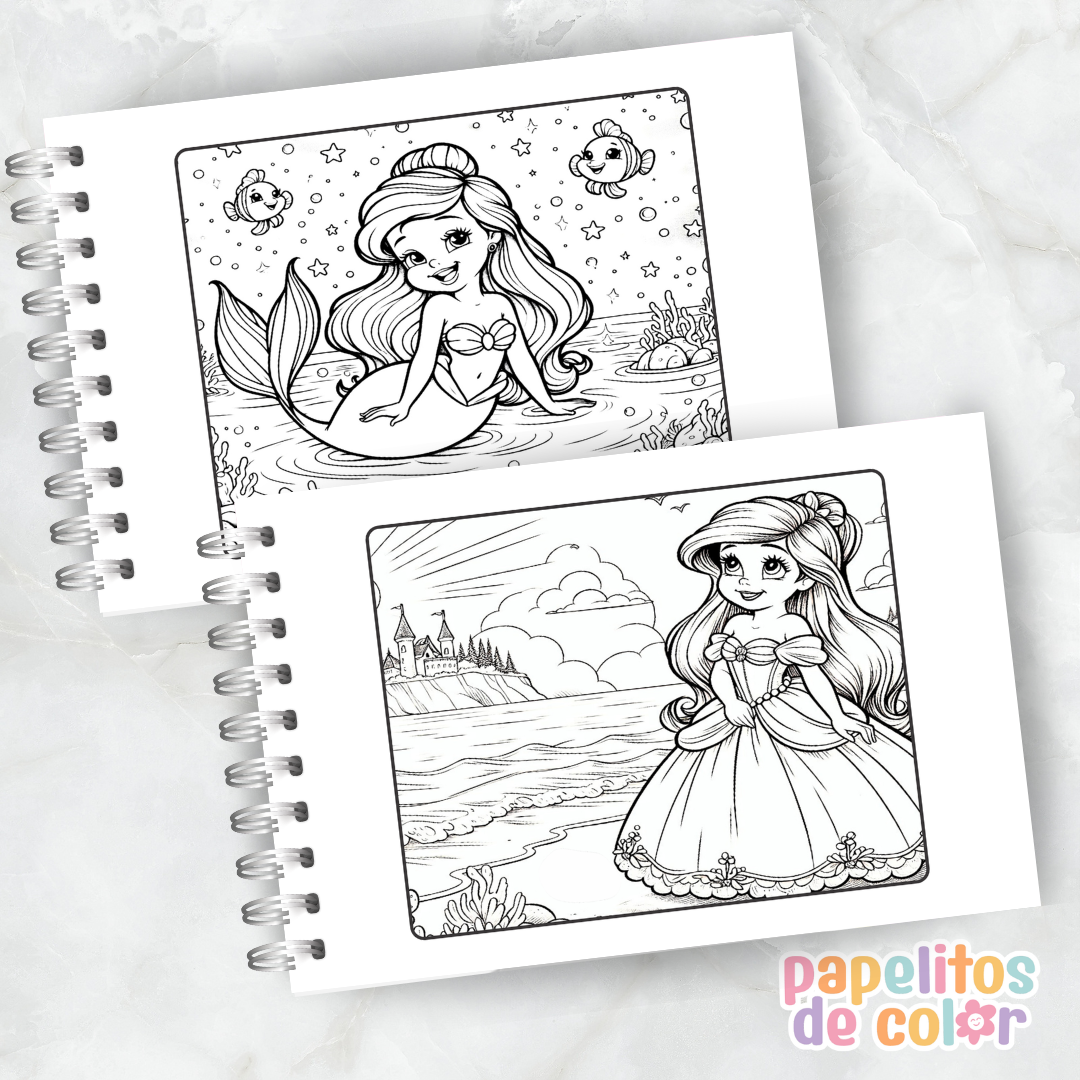 Sumergite en un mundo mágico bajo el mar con este encantador cuaderno para pintar de La Sirenita 🐚✨ Ideal para quienes aman las historias de princesas, aventuras y fantasía 🌈💫