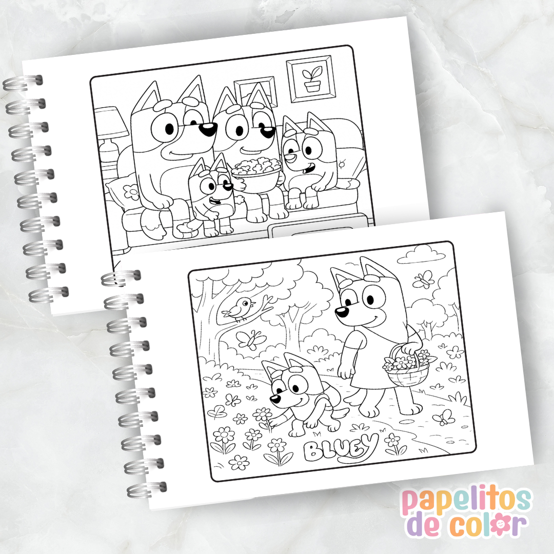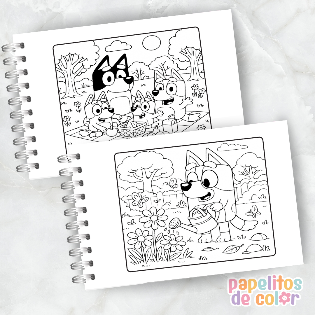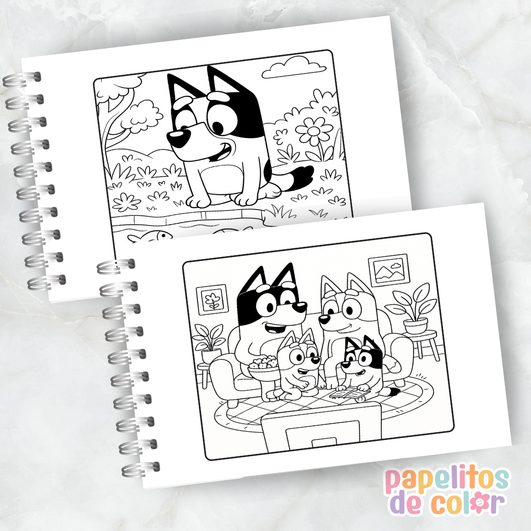 Diversión, ternura y aventuras en cada página 🐶🖍️ Ideal para los más chicos y fans de Bluey que aman crear y jugar con colores.
