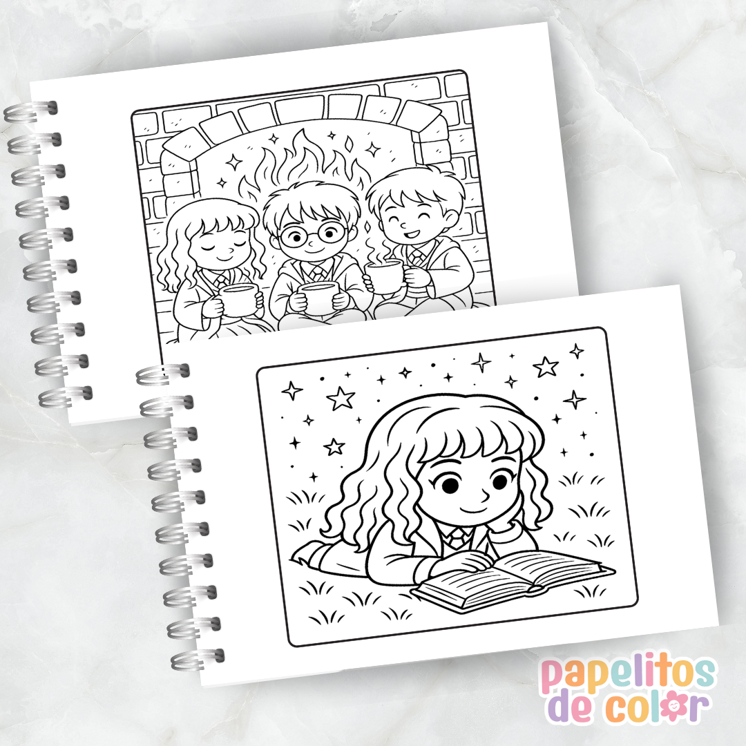 Magia, aventuras y hechizos en cada página 🪄🖍️ Ideal para fans que quieren seguir explorando el mundo mágico mientras pintan y crean.
