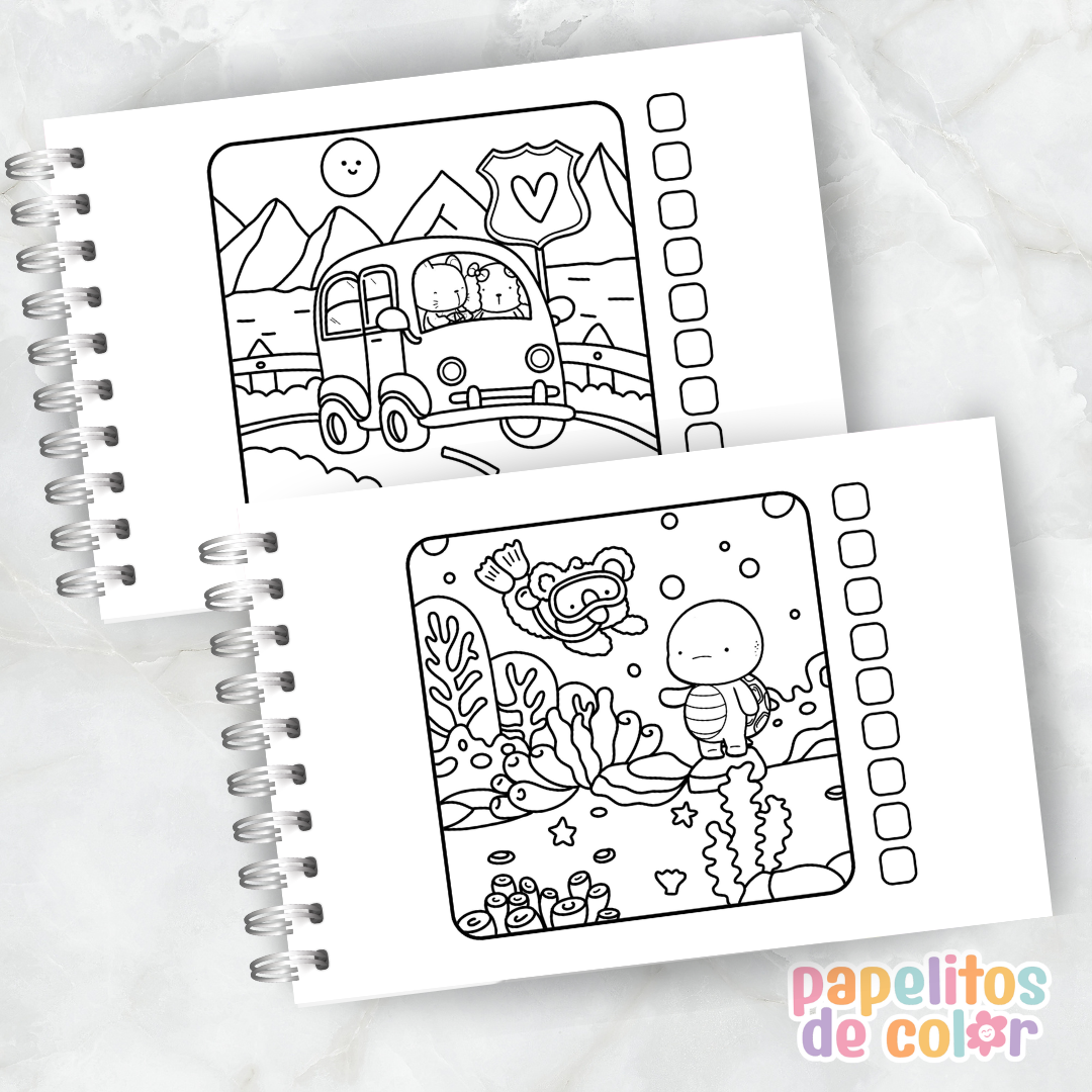 Un recorrido lleno de color, relax y creatividad en cada página 🖍️🧳 Ideal para desconectar y disfrutar pintando donde quieras.