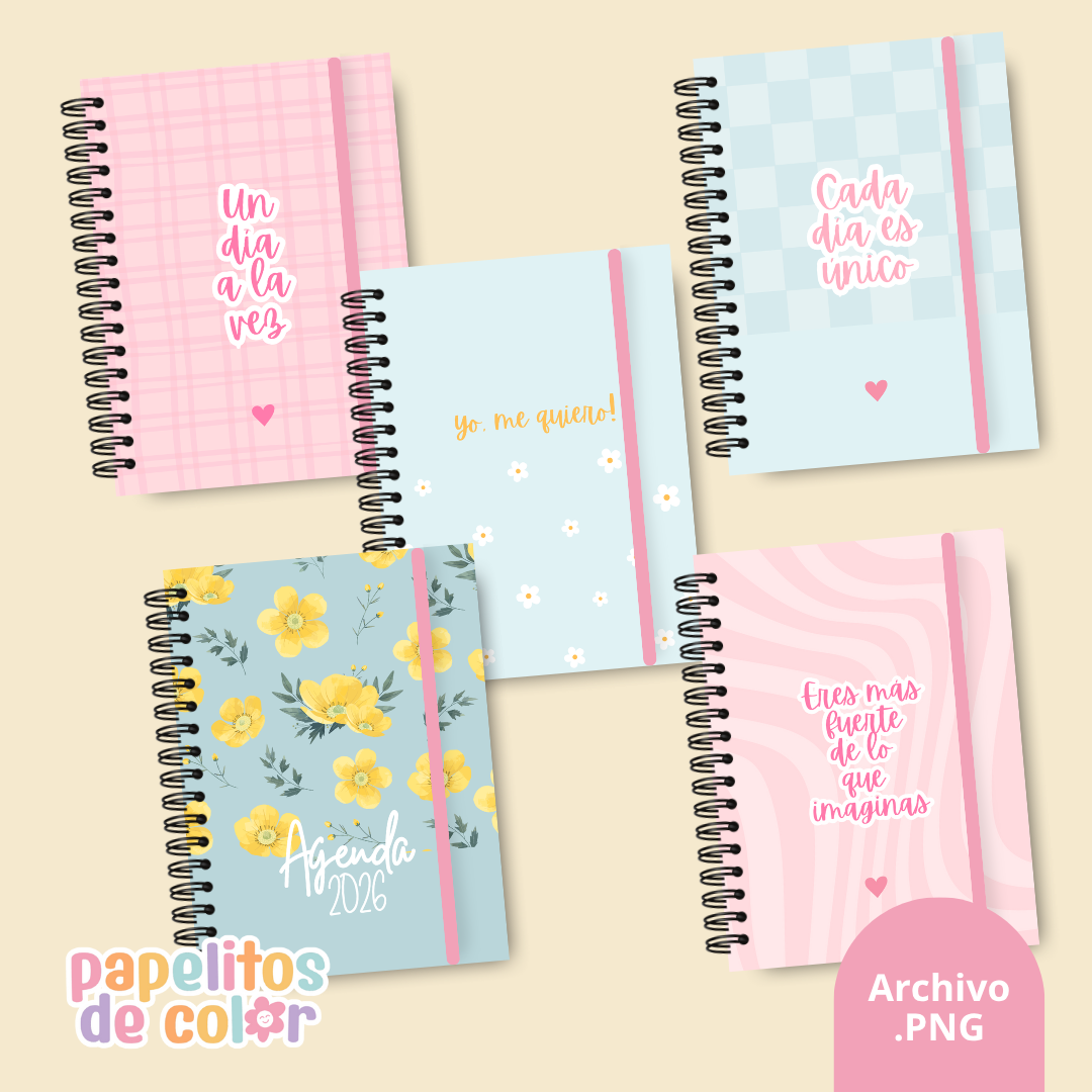 Dale un estilo único a tus agendas sin complicaciones con este pack de 25 tapas con sus respectivas contratapas.