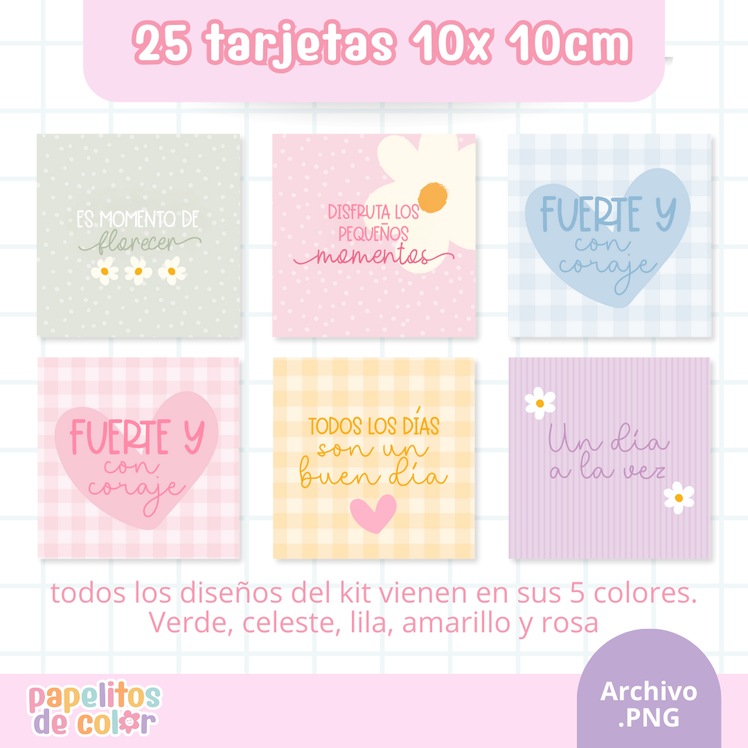 Todo en tonos pasteles, con frases lindas, flores y corazones 💕, para que cada paquete sea un verdadero regalo.