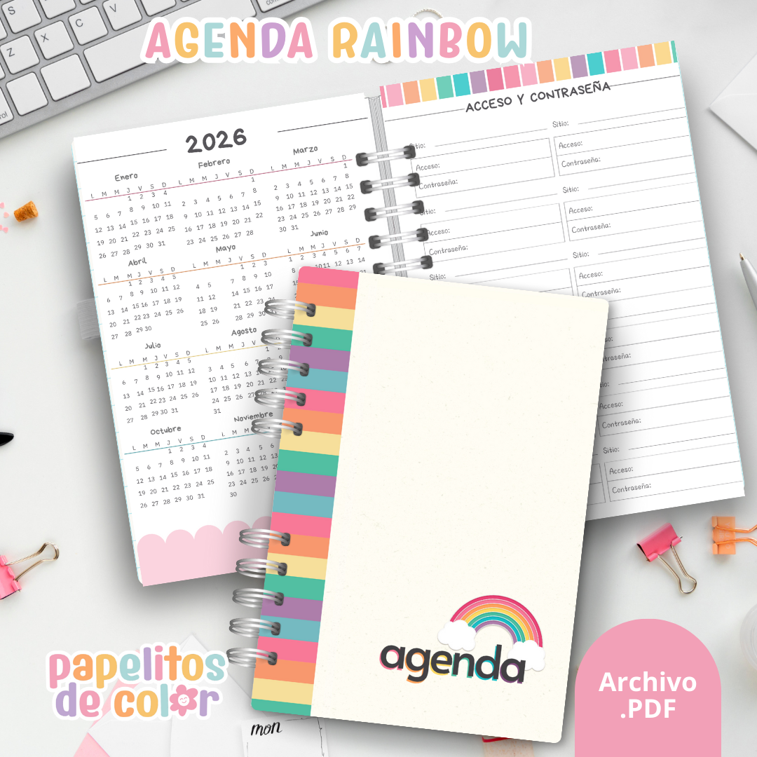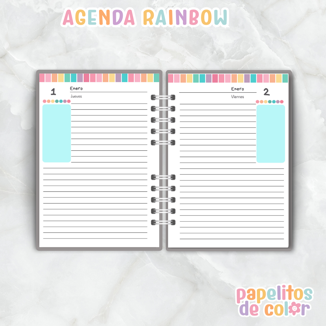 Organizá tu año con estilo y color con la Agenda Rainbow Diaria 2026 🌸🌈. Con un diseño alegre y funcional, es perfecta para quienes aman llevar cada detalle al día, sin perder el toque tierno y femenino.