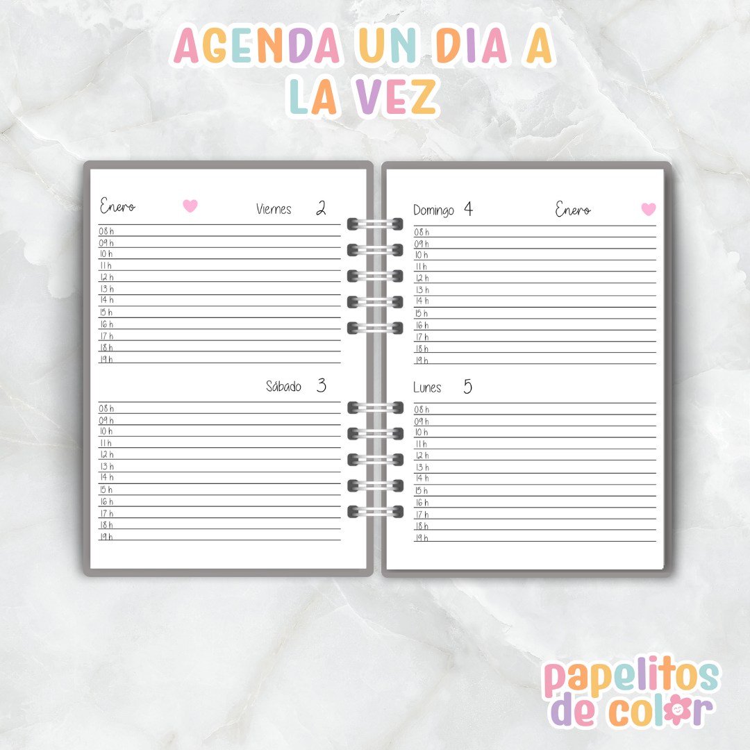 📔 Agenda fechada 2026 → 2 días por hoja