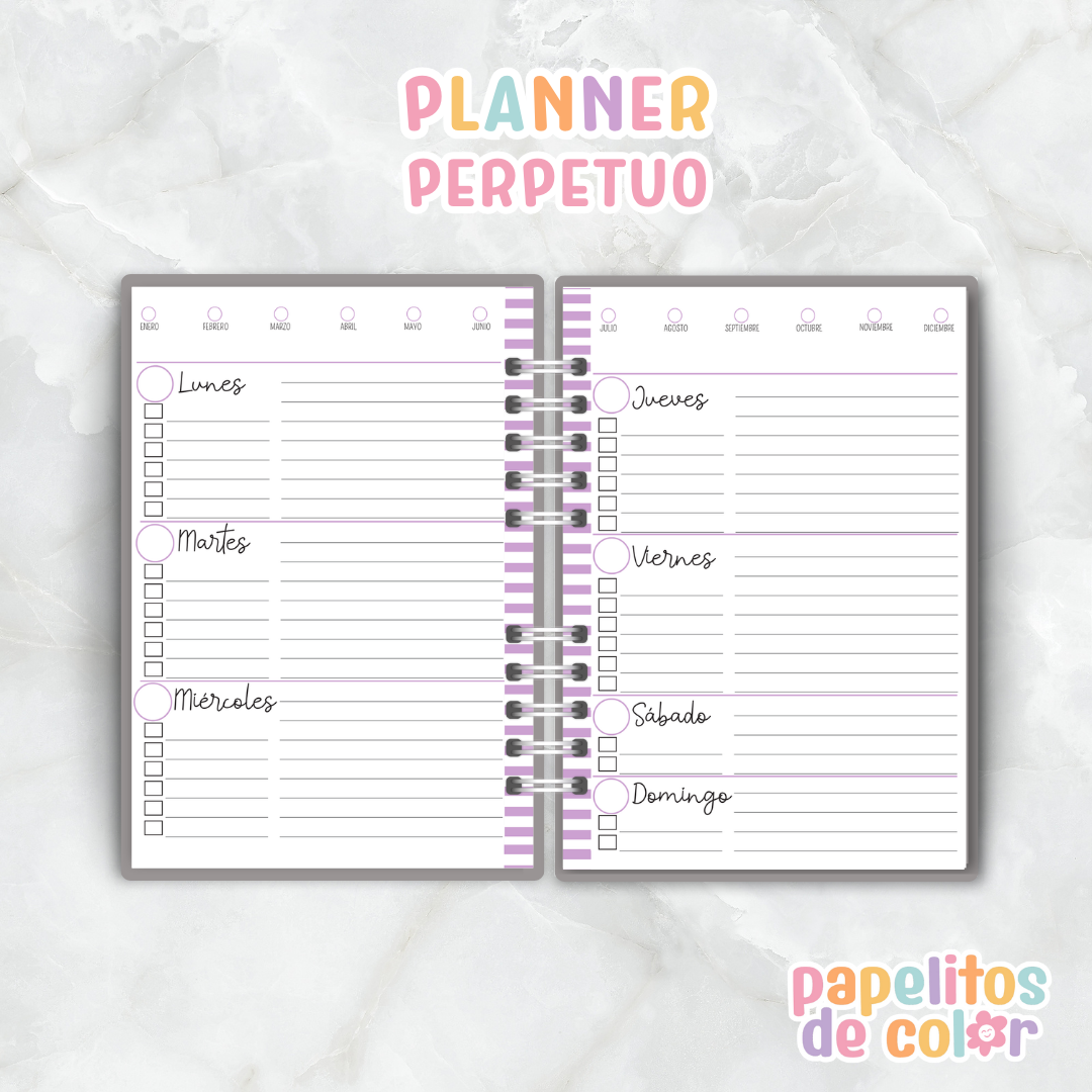 Organizá tu año a tu ritmo con este hermoso Planner Perpetuo Lila 💜.