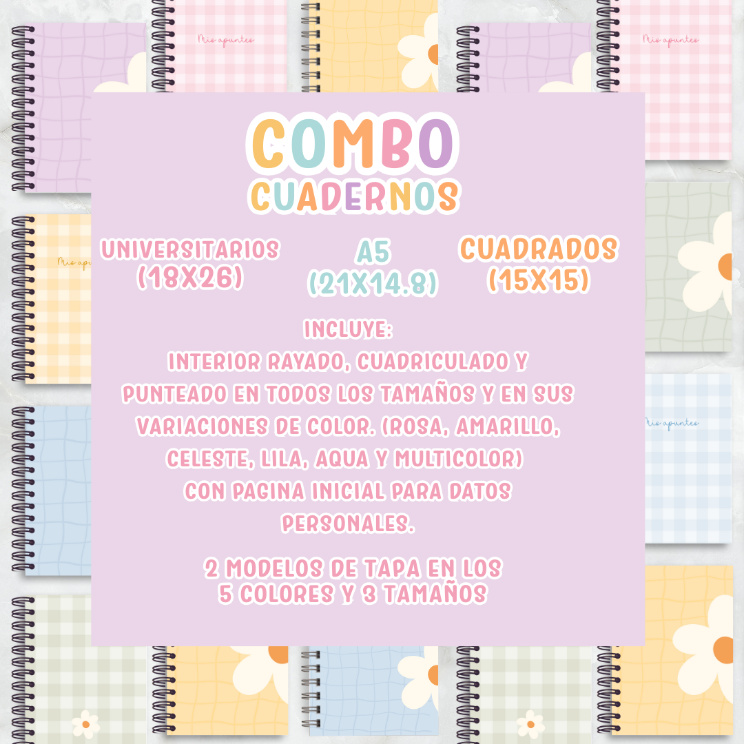 El Super Combo Cuadernos es un pack completo y versátil para que armes cuadernos únicos, funcionales y llenos de color 🌈💖.