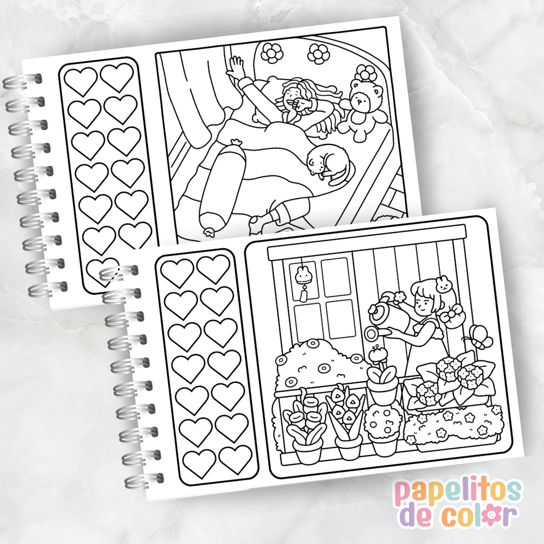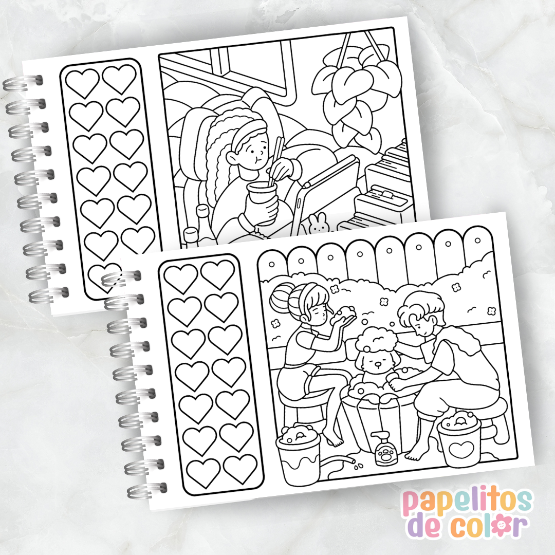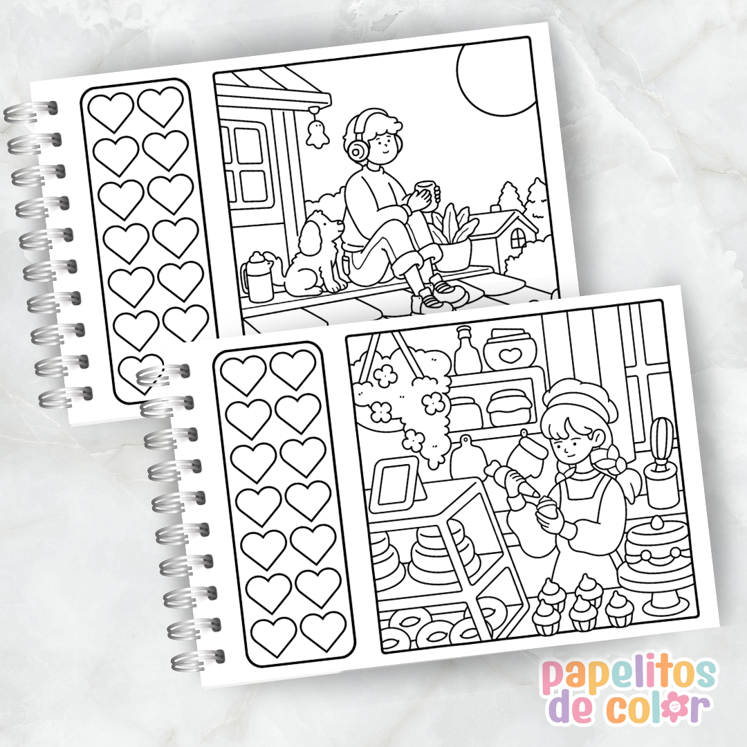 Disfrutá de escenas cálidas y encantadoras con el Libro para Pintar – Cozy Moments, creado para relajarte, inspirarte y dejar volar tu creatividad en cada trazo.