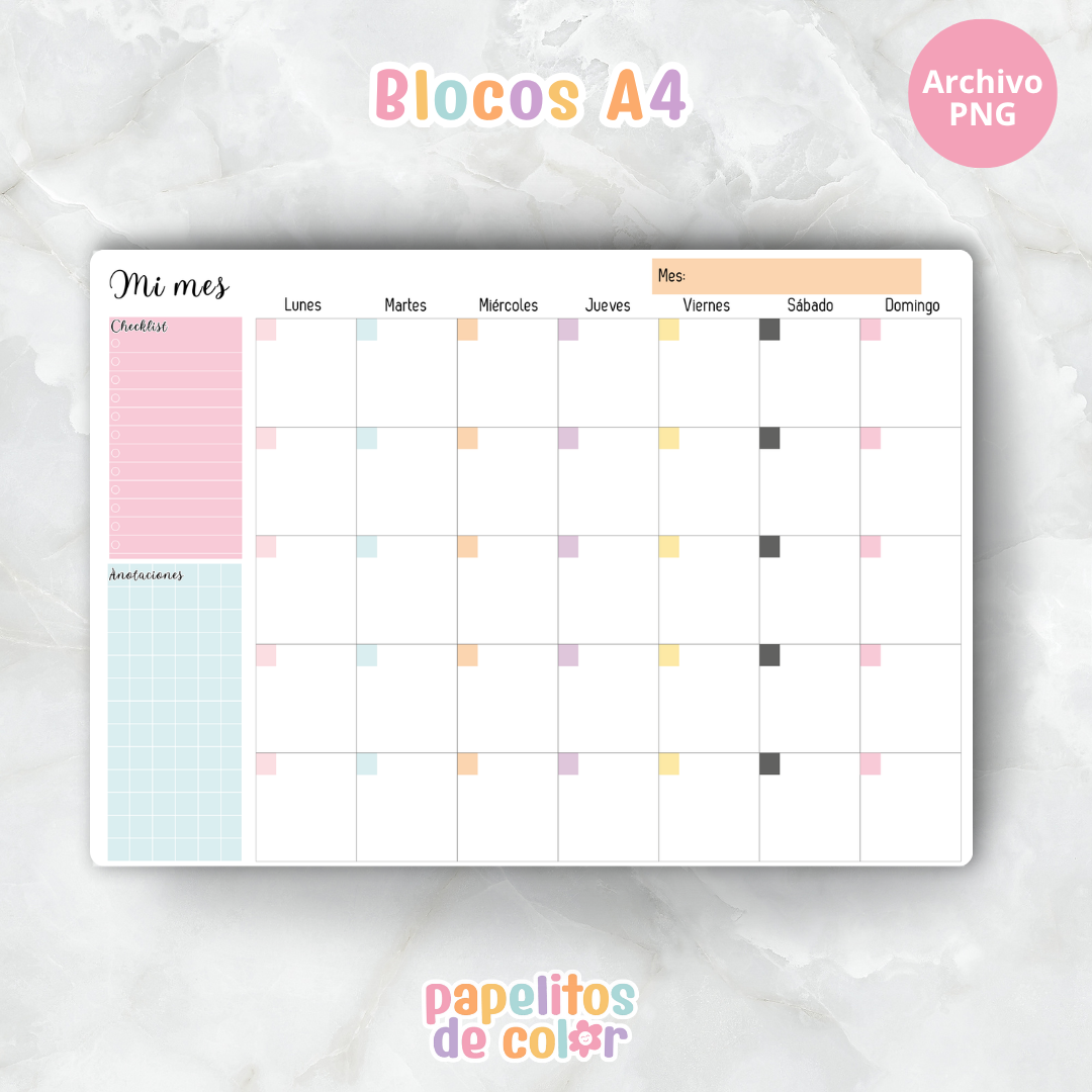1 planner mensual tamaño A4