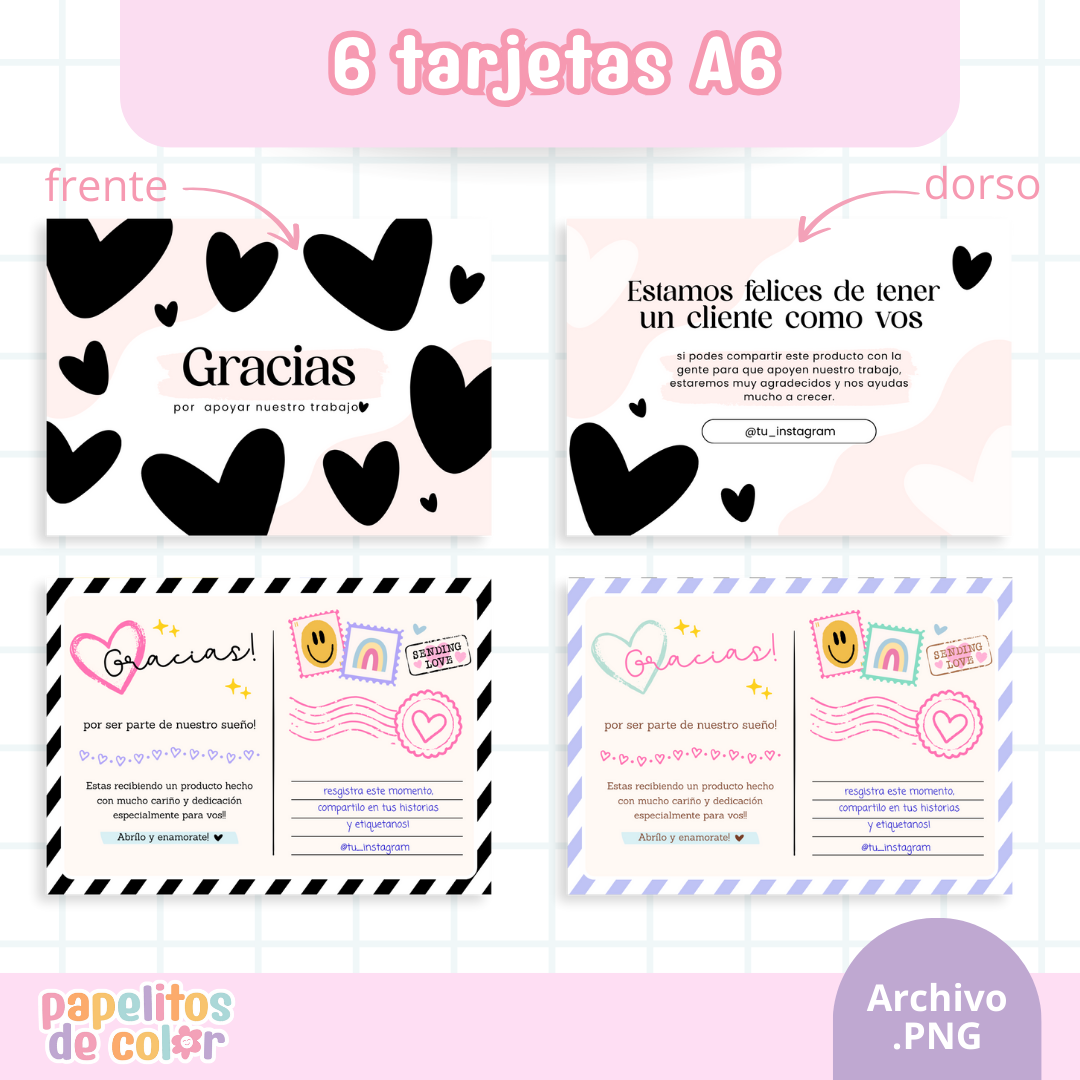12 tarjetas A6 (formatos horizontal y vertical)