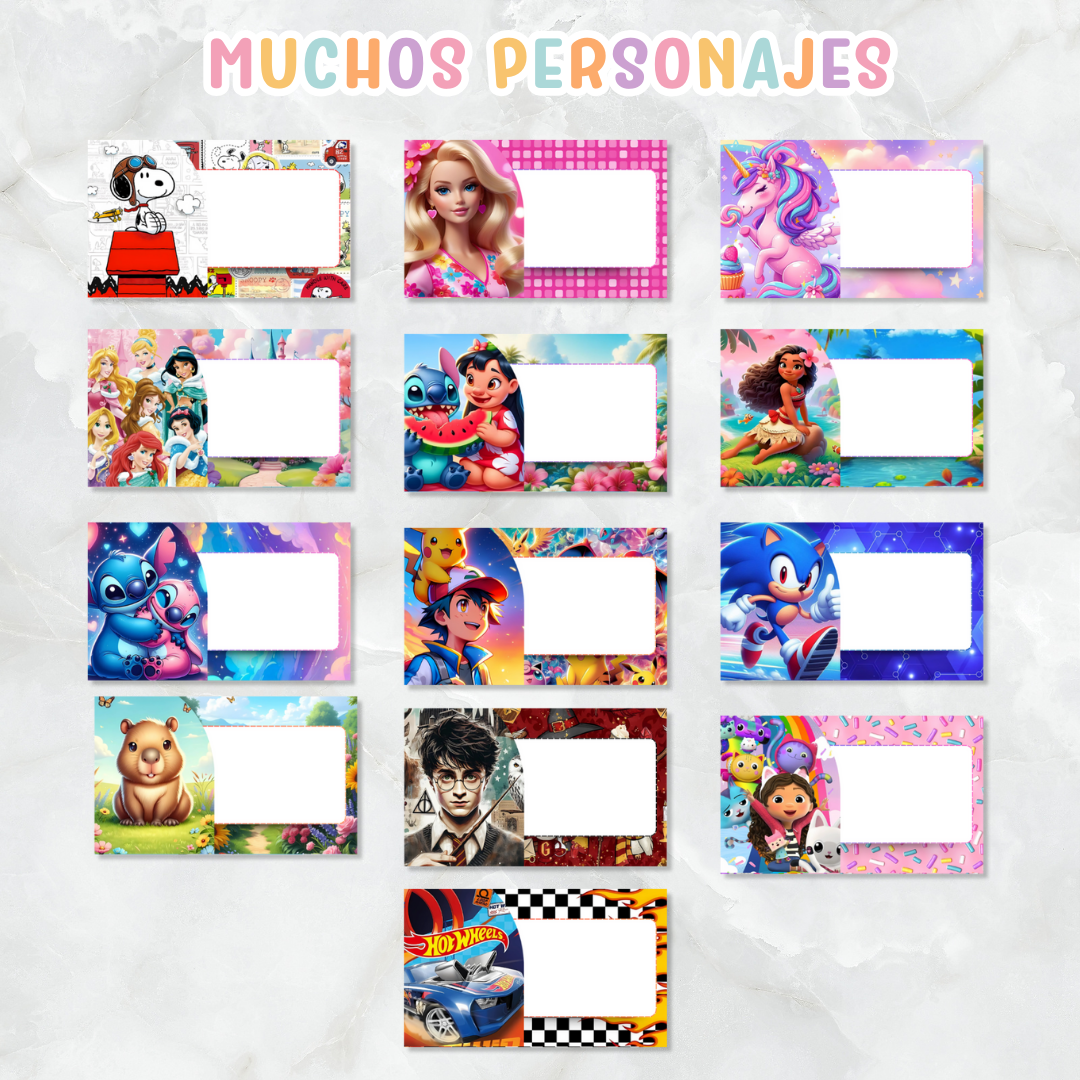 Este kit de etiquetas escolares + tapas para cuadernos es ideal para personalizar útiles, libros y carpetas con los personajes favoritos de peques y no tan peques 💕