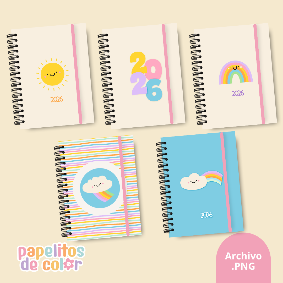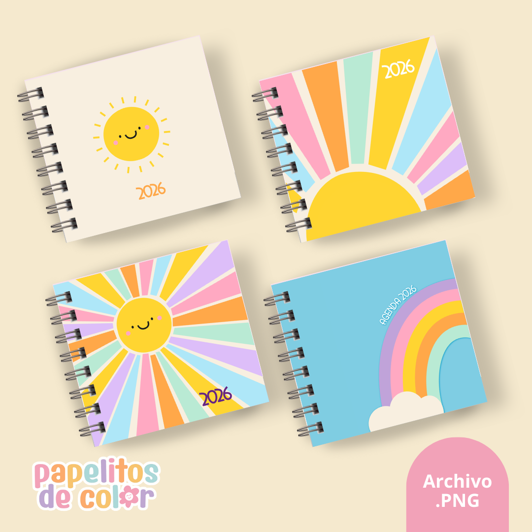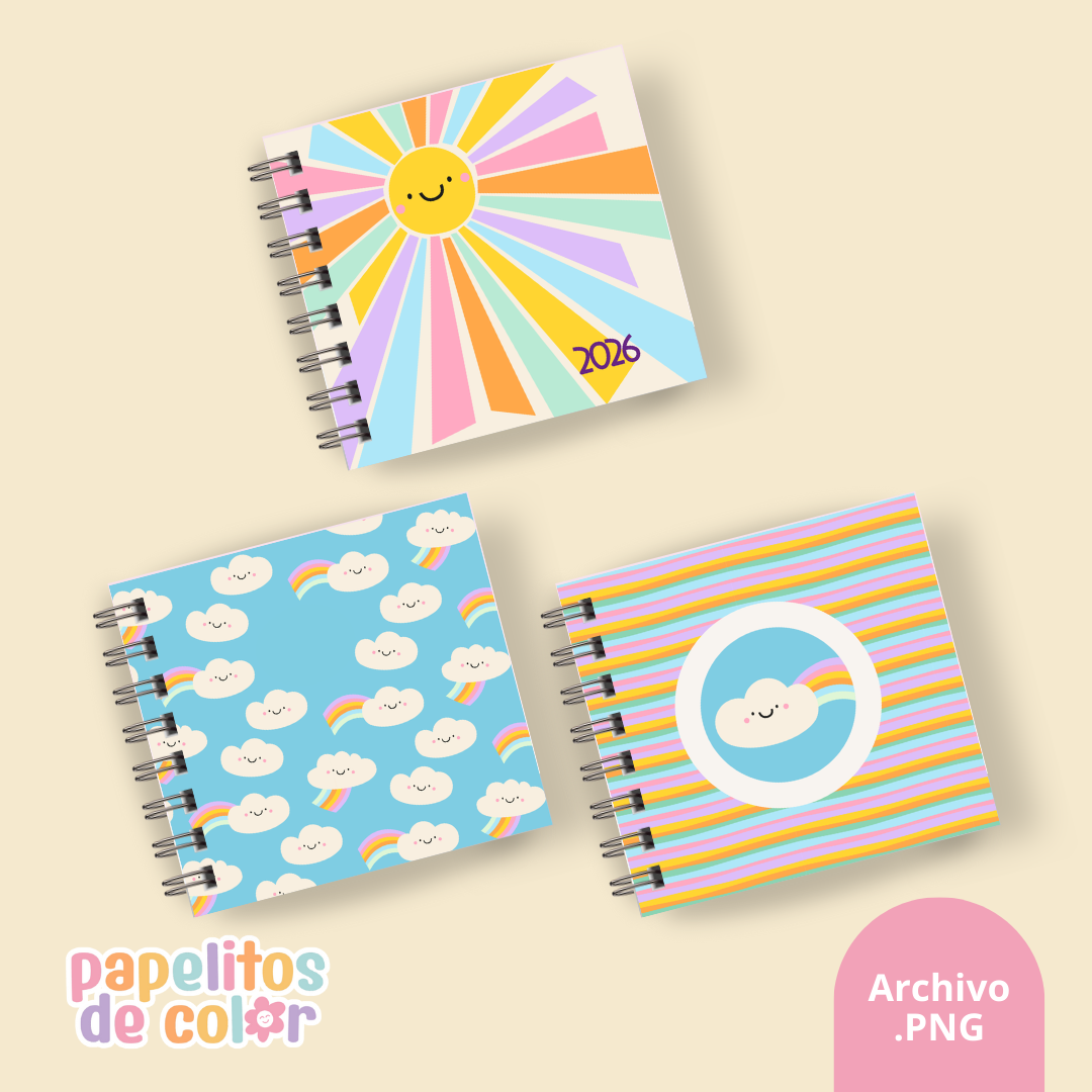 Incluye 30 portadas alegres y súper coloridas, disponibles en formato A5 y 15×15 cm (las mismas 30 en ambos tamaños) 🌈📒 Ideales para cuadernos y agendas 2026, perfectas para sumar luz, energía y estilo a tus creaciones ✨💛
